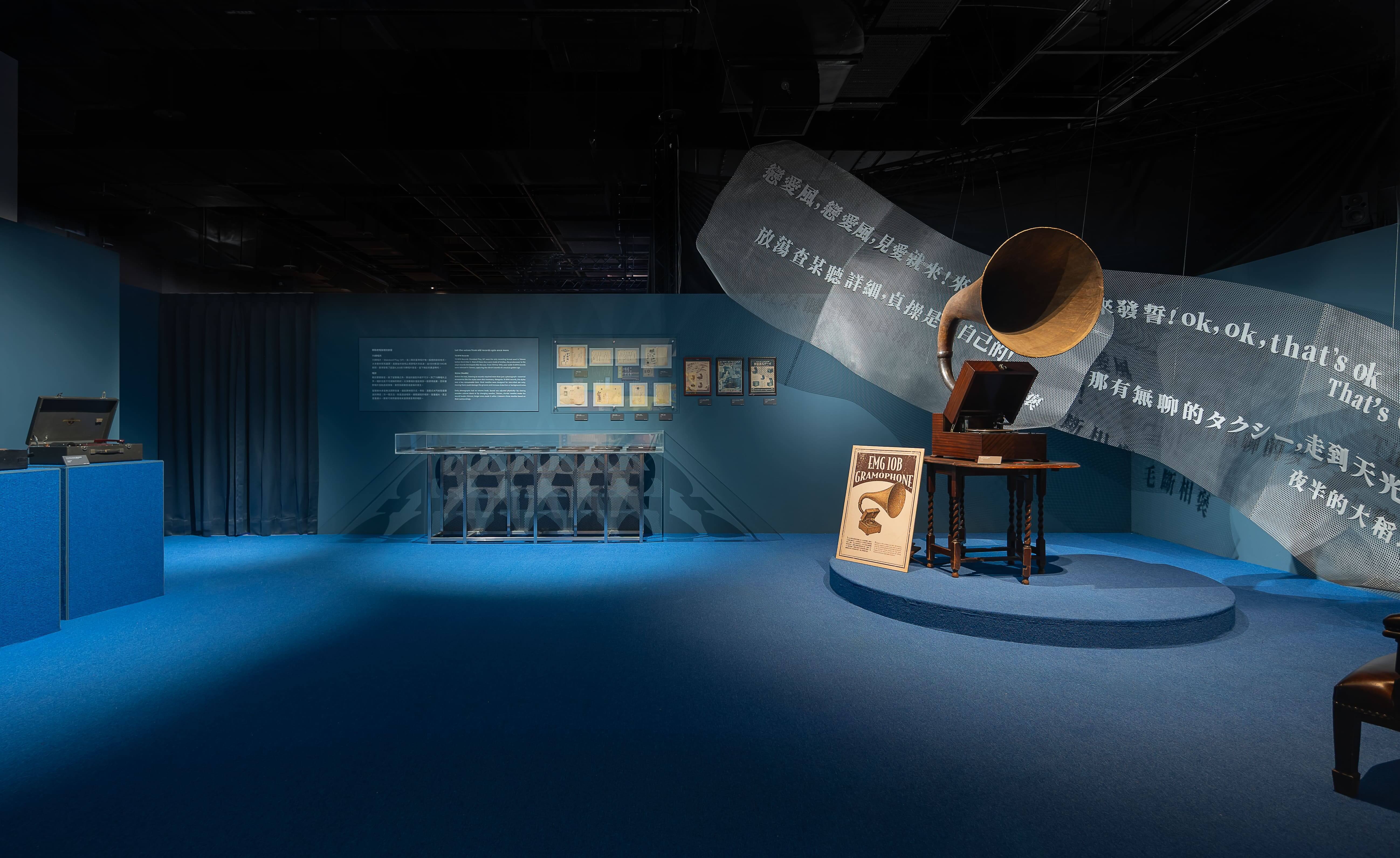 掀開洋貨行後方的藍色布幔,映入眼簾的是來自聲色林珮如,以紙糊巨大鐘型喇叭聞名的E.M.G.手工留聲機來作為場域核心的第二進【摩登音樂沙龍】。昔日大稻埕「前店後廠」的建築記憶,邀請到訪的觀眾自在進入、遊走與聆聽。歌詞金句隨著留聲機傾流而出,在空中化作文字旋律與思想共舞,連結流行音樂脈動的時代共鳴。