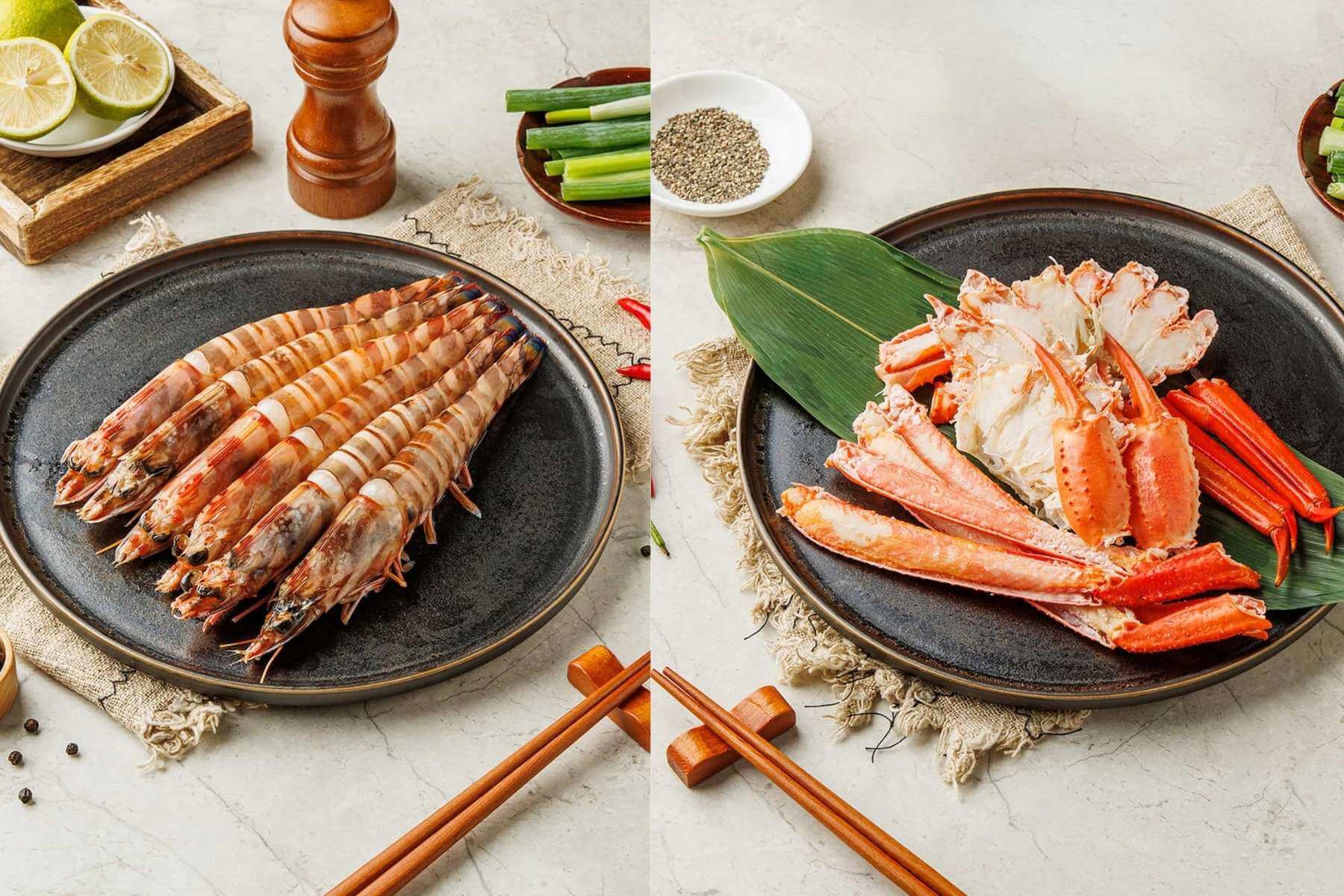 嚴選高品質海鮮,為年末與年節餐桌增添奢華亮點!松葉蟹盤肉質細緻鮮甜,適合做火鍋、蒸煮或冷盤料理,輕鬆呈現海味原鮮;明蝦盤則有六尾新鮮大明蝦,肉質Q彈飽滿,無論燒烤、清蒸或入鍋都能完美展現鮮美風味,讓團聚餐桌更豐盛、更有儀式感。