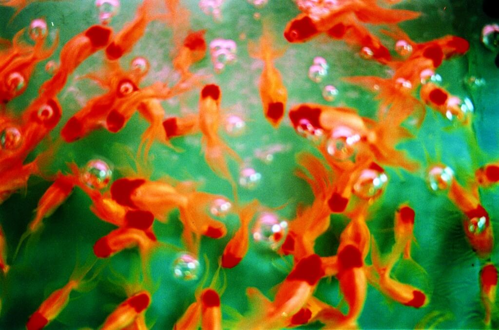 突破來自 1998 年前後的一次頓悟。傳說某次她在沖洗底片時,機器故障讓相片染上了意外色彩,加上花市中鮮花給予的視覺衝擊,讓她決定拋棄「藝術攝影必須冷靜客觀」的教條。她開始大量使用高飽和度的正片(Slide Film),將鏡頭對準俗豔的金魚、人工染色的花朵。