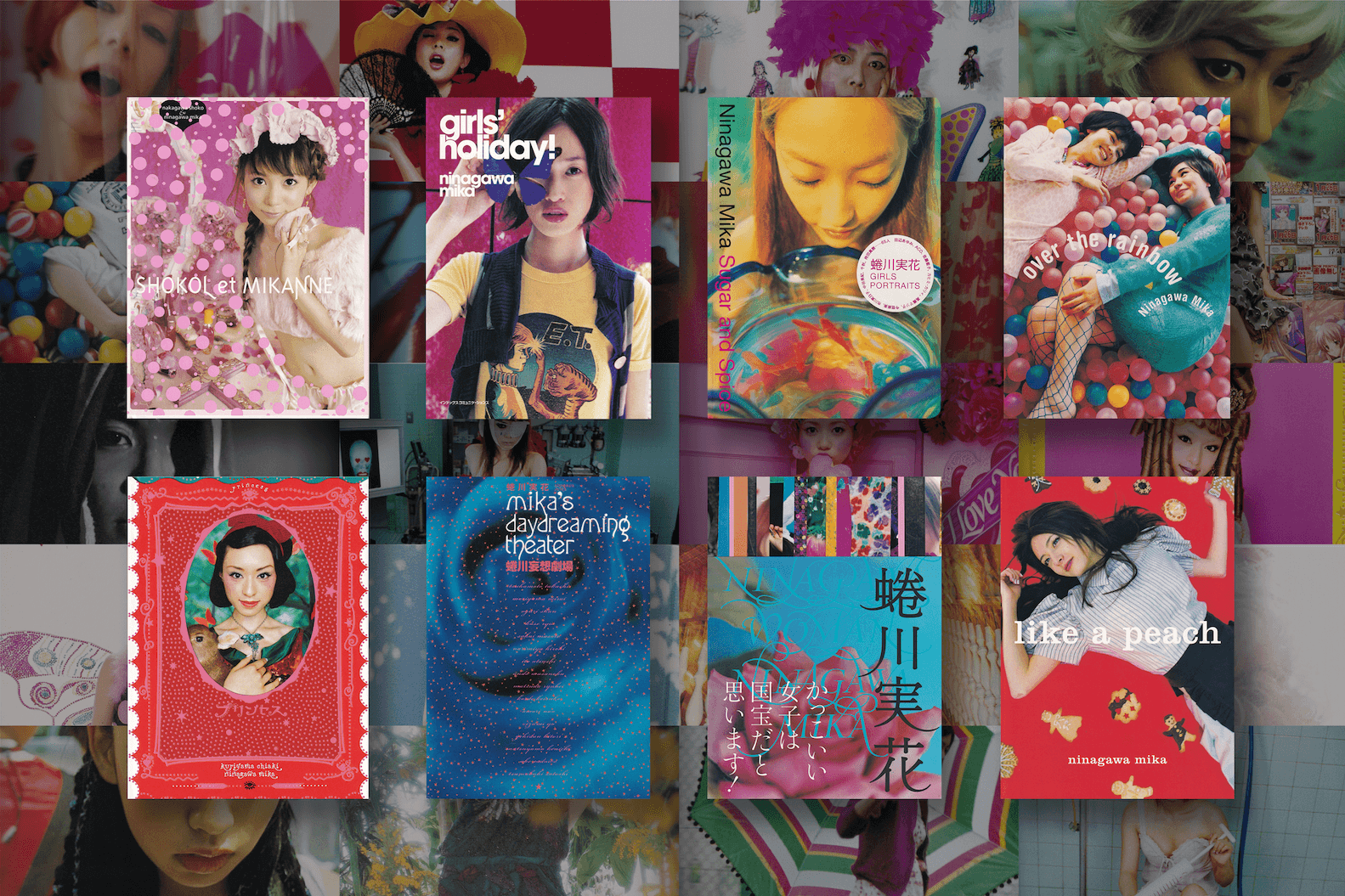 《SHOKOL et MIKANNE》是蜷川實花與橫跨模特兒、偶像界的中川翔子於2007年共同激盪出的寫真集作品。整本寫真集捕捉了中川翔子的身影,並強烈展現了蜷川實花標誌性的視覺語彙,那種極致鮮豔、高飽和度的美學,將流行文化肖像與藝術家早年(2000年代初期)典型的繁花與繽紛意象完美融合。