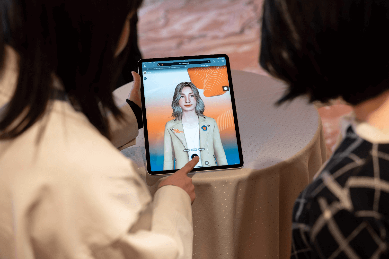 本屆展會同步導入 AI Avatar 作為觀眾端的輔助介面,讓觀展不再只依賴現場解說或文字標示。觀眾可透過數位介面快速理解展會架構、藝術家背景與作品脈絡,在移動樓層與展間的過程中,即時獲得引導與資訊補充。這樣的設計並非取代人與藝術的直覺互動,而是提供一條更流暢的理解路徑,使不同經驗層次的觀眾,都能在自己的節奏中進入作品。
