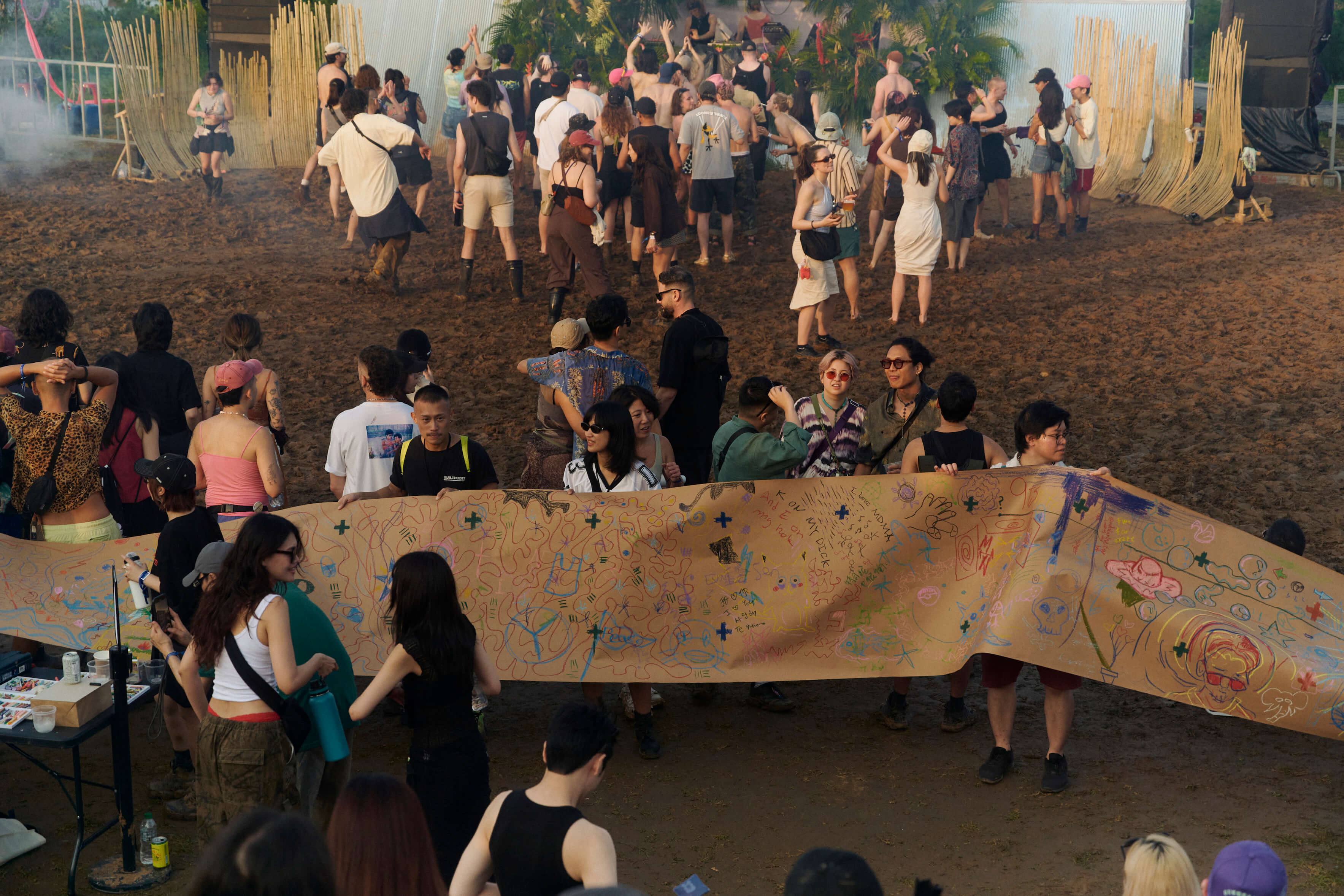 住宿方面,今年首度與專業品牌「友翔戶外」合作,推出全面升級的豪華露營選項。在日夜顛倒的狂歡之餘,工作坊提供了釋放肢體的絕佳機會:包含感官互動瑜珈、解放身體慣性的Free Style律動課、深層伸展的皮拉提斯,以及透過毛線編織的裝置共創與邁入第五年的有機寫生。