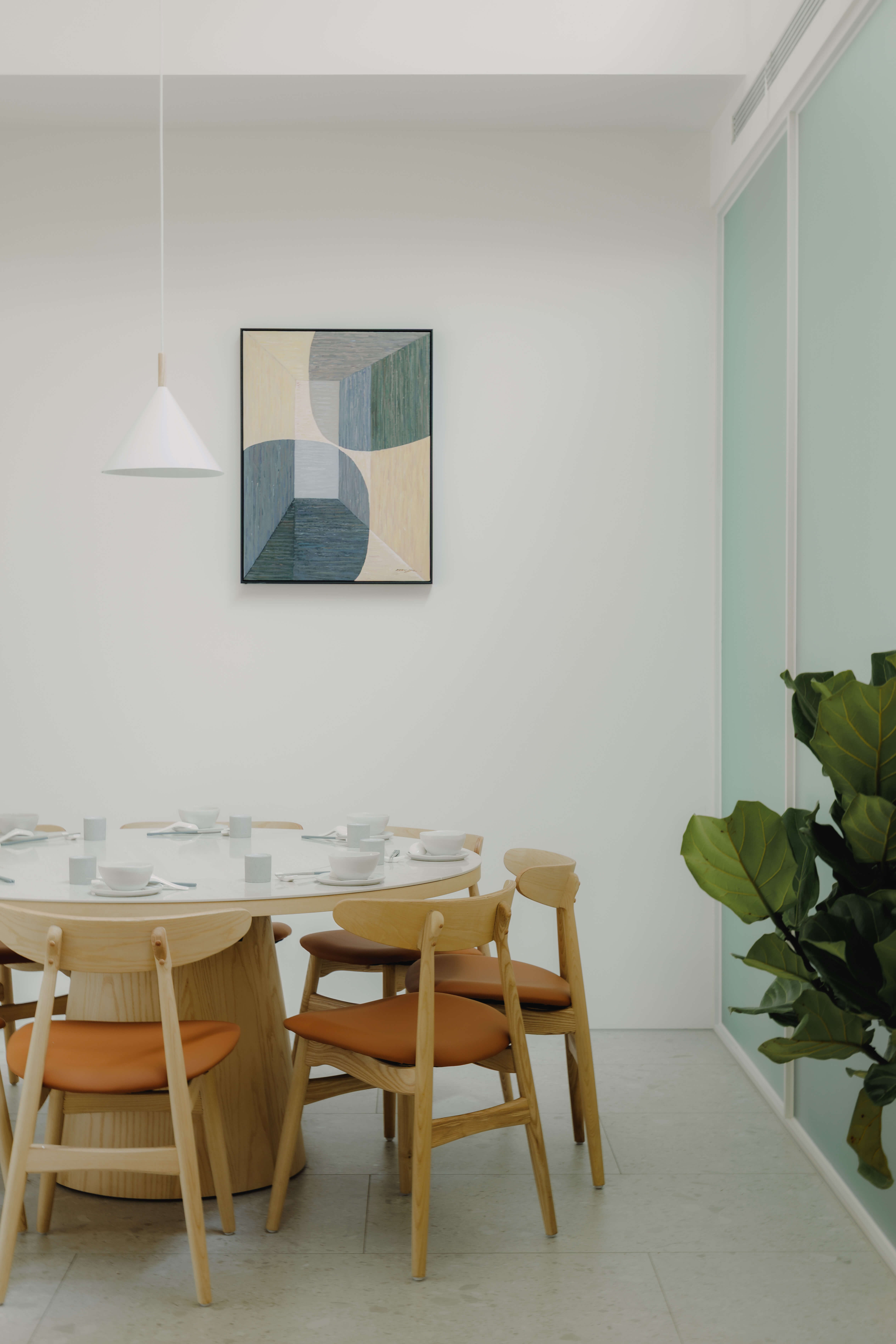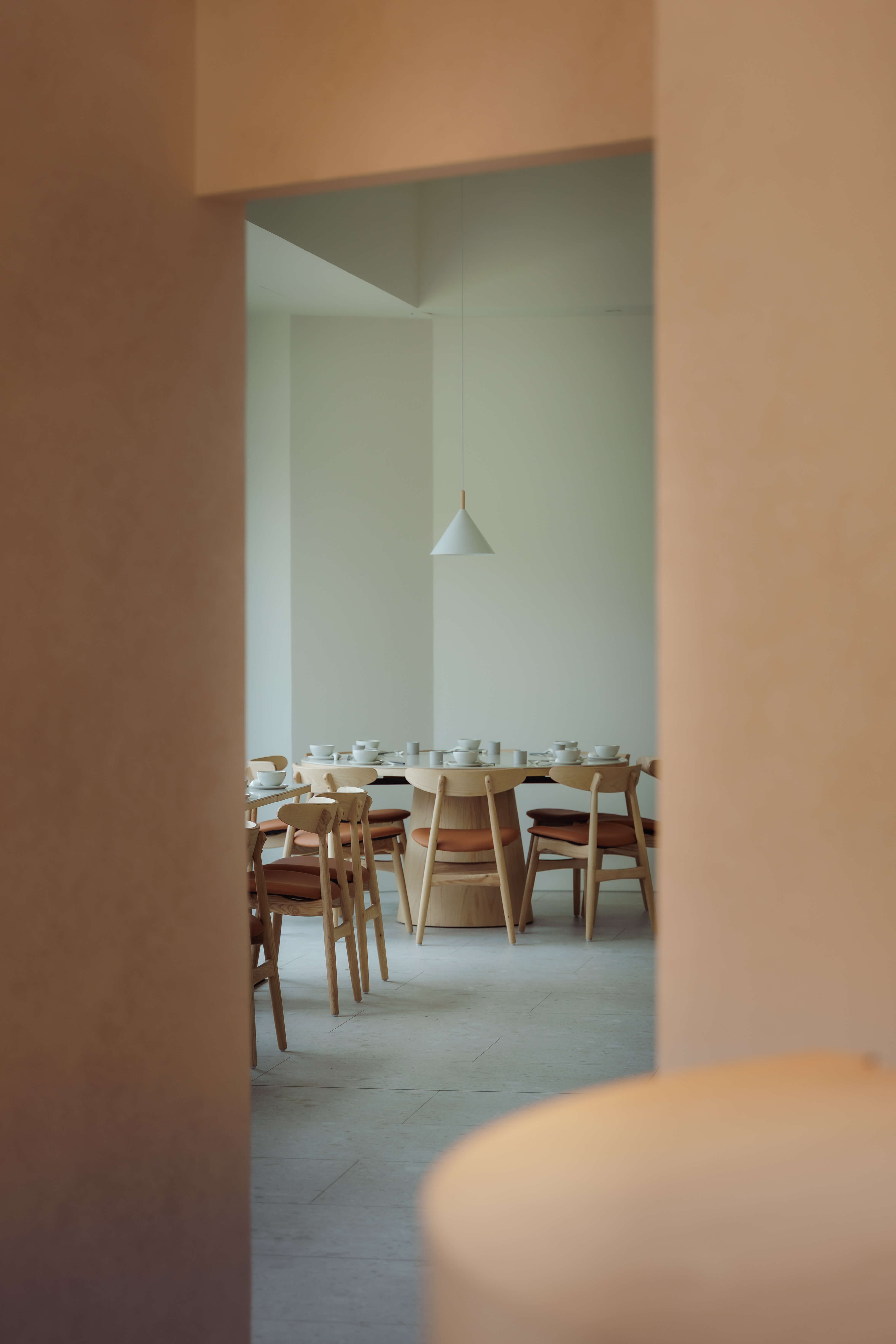 空間設計透過留白、光線流動與開放動線,創造輕盈與放鬆的平衡狀態,物件與擺飾也都選擇溫暖而內斂的色調。空間以留白與溫潤材質構成,降低文化符號的直接表述,轉而透過服務節奏與用餐體驗,形塑帶有歸屬感的生活場景。