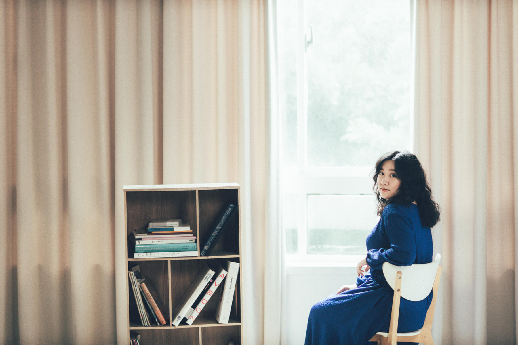 張西長訪談中談她的創作觀,也提到邁入社群時代後,20世代間更加放大的存在焦慮。(攝影/蔡傑曦;服飾提供:許許兒)