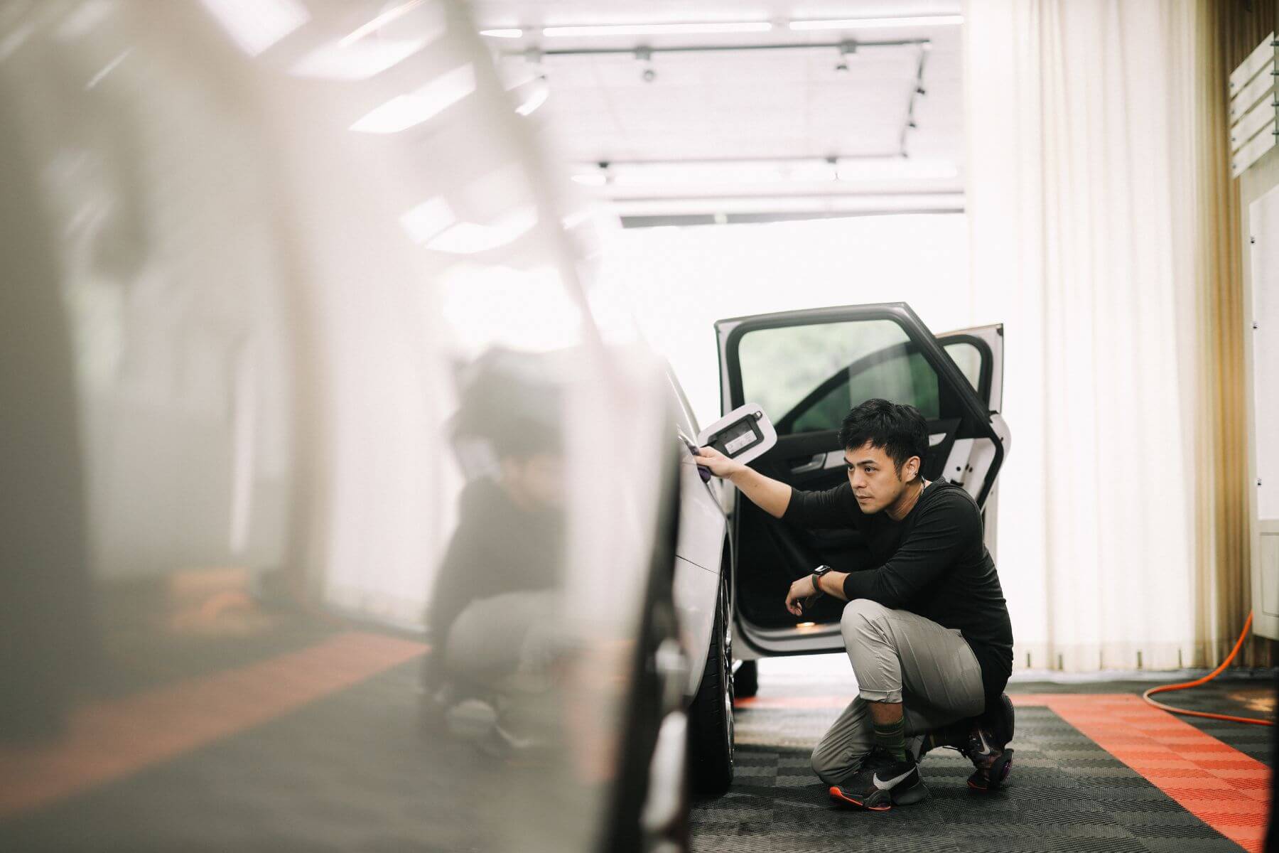 「車漆整復的過程,其實是先破壞車身上的傷痕,再重新修復回鏡面的模樣,過程必須非常小心⋯⋯。」姜泰宇解釋著鍍膜流程,說的既是車子,也像是自己的人生歷程。曾經年少得志的傲氣,在一次次重新打磨過後,顯現出最真誠的樣貌,「洗車工」是他重新為自己鍍上的堅實外裝。