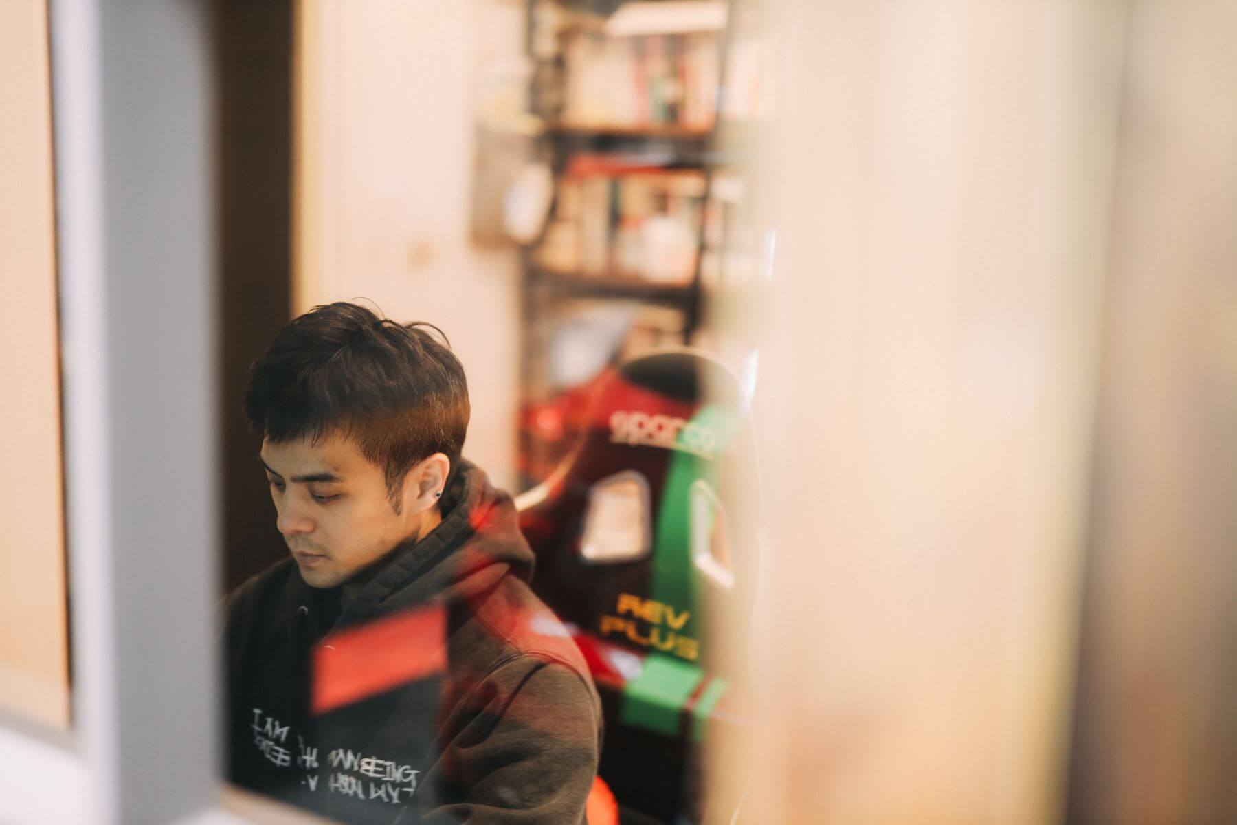 拜訪位於林口的汽車美容中心,外頭飄著綿綿細雨,踏進店裡,地面卻不見多餘的水漬,狹長的店面整理得清爽明亮。老闆姜泰宇帶我們穿過兩台待整理的車,走進辦公空間,裡頭除了個人工作桌和接待客人的沙發座椅外,另有一整面書牆,毫無違和地融入洗車行的場景裡。