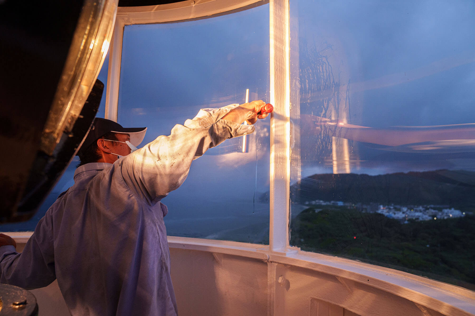 一座燈塔,有許多外人看不見的死角與工作瑣事,燈塔位處邊疆、靠海而有鹽害:「季節風過後,要是沒有快速清洗,燈塔裡外的東西都很容易生銹,會造成鋼筋銹損,有崩裂危害。」因此,清洗燈塔的工作,如同割草一般頻繁。