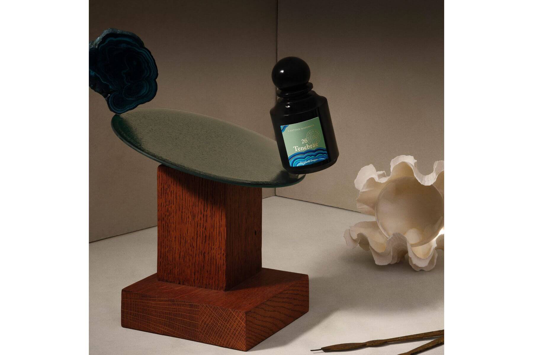 一片漆黑不見五指的幽暗之處,一棵土沉香樹生長在枯萎蕪穢的自然地景中,寂寥燃燒,潔淨清爽的皂香與屏息凝神的焚香纏繞出情迷心魄的氣息,幽雅繾綣誘引著周圍的動物。