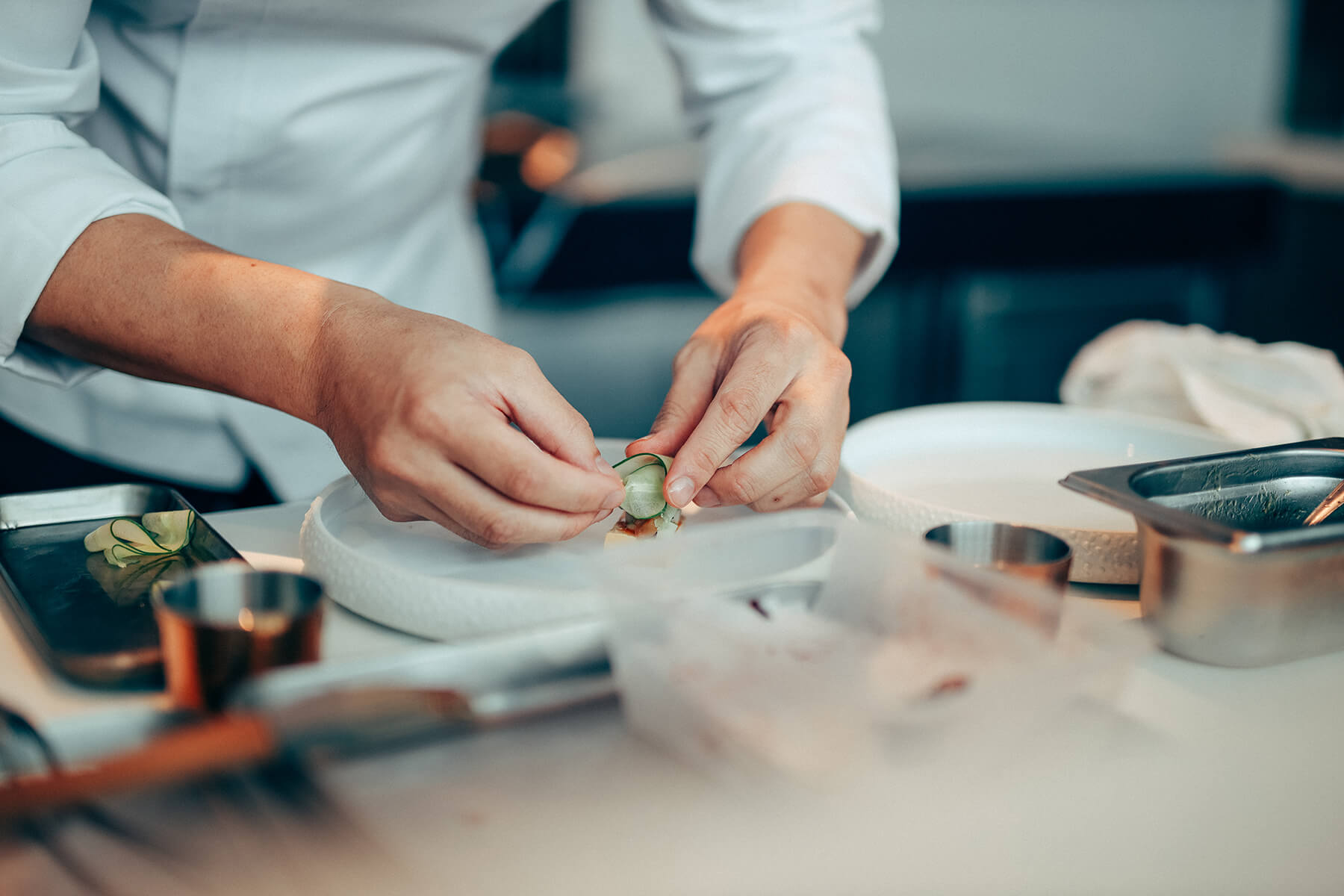 鄭裕錞主廚說,法國料理的關鍵在於「平衡」──從食材組合、烹飪火候、醬汁調味、擺盤到選搭佐餐酒,無一不講究,務求讓風味、口感和視覺達到絕妙平衡。在架構一道料理時,主廚會先決定主食材,再依希望呈現的味道、香氣或口感去選用食材。而葡萄酒也是法國料理不可或缺的重要元素,能提升美味層次。以五感細細感受餐酒配搭出的平衡,即是法國料理的品味方式。