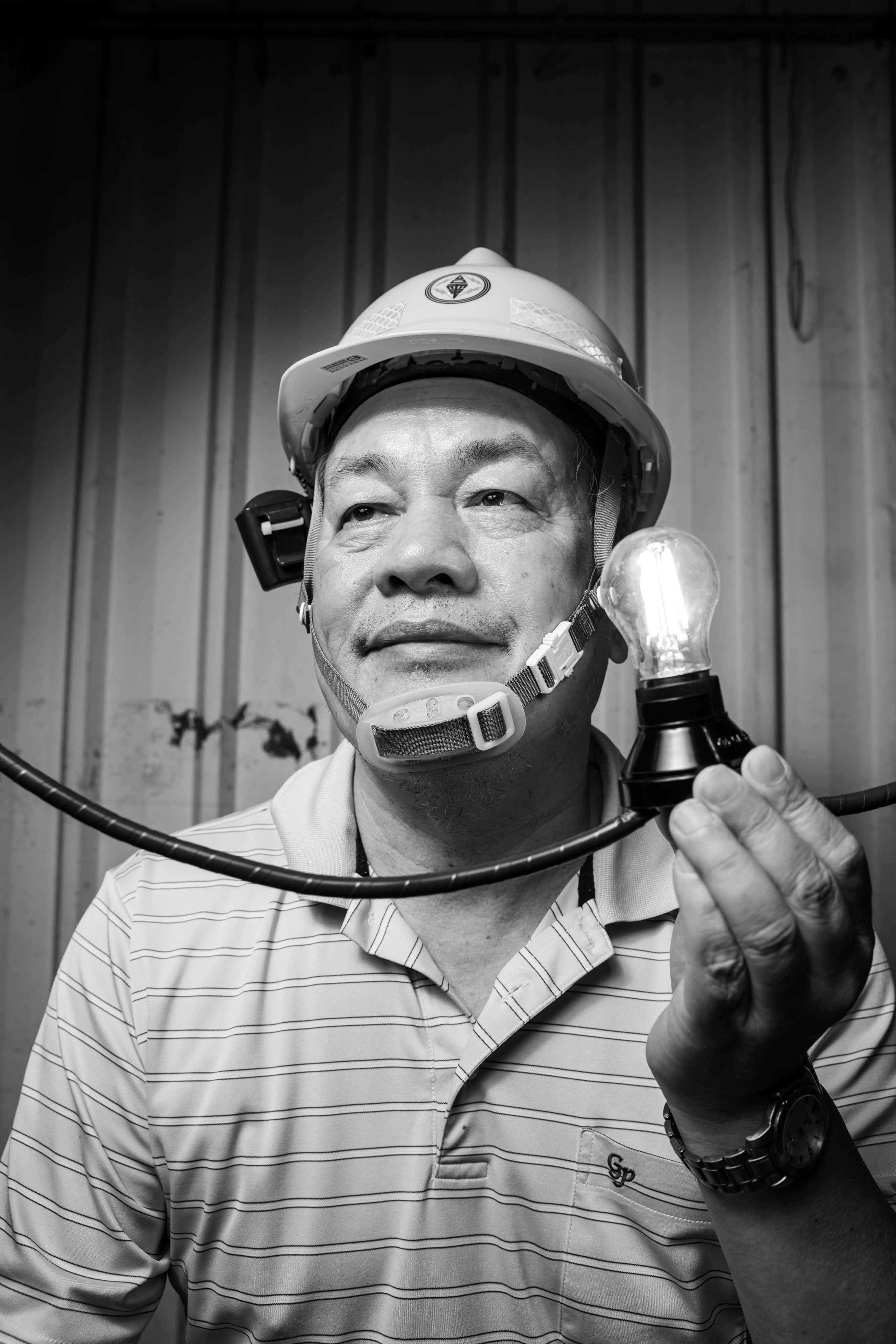 其中參與到拍攝的電力修護處處長邱土添,拍照當天還有點好奇與納悶:為何拍照要拉條電線、拿個發亮的燈泡,拍攝當下尚未有其他的連結,後來看見兩百多張肖像照的成果時,整體群像的畫面讓他理解了透過被拍攝大夥一同演繹通電以後的串連力量,對於內部在修護處將搬遷前,會是大家生命中一個很好的紀念,也會是白晝之夜很珍貴的記憶。