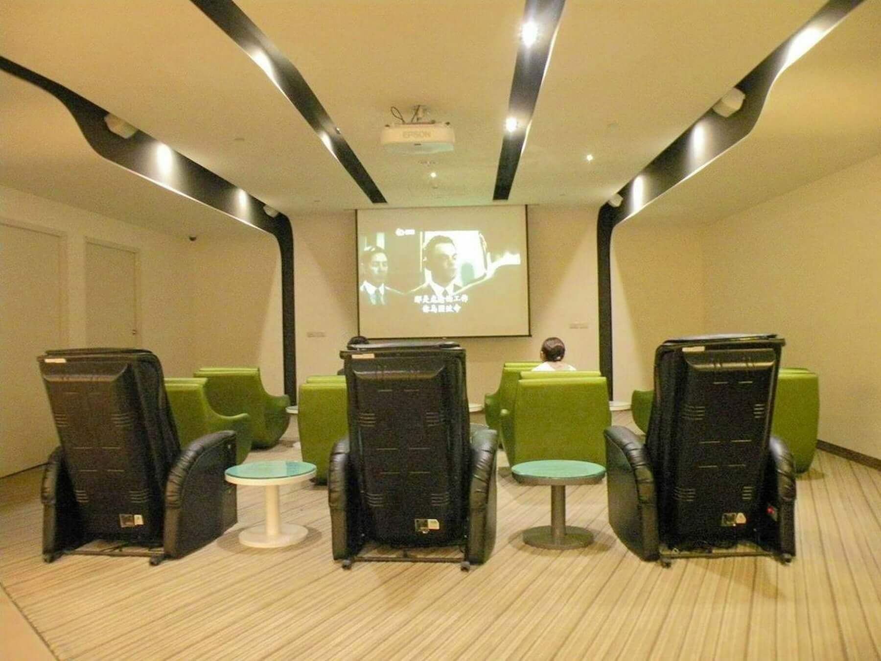 在第一航廈華航轉機櫃檯後方有個神秘的休息區,這裡除了有可以免費使用的按摩椅及躺椅以外,還會不定時播放電影,據網友表示片單都蠻新的,是個轉機打發時間或是休息的好去處。