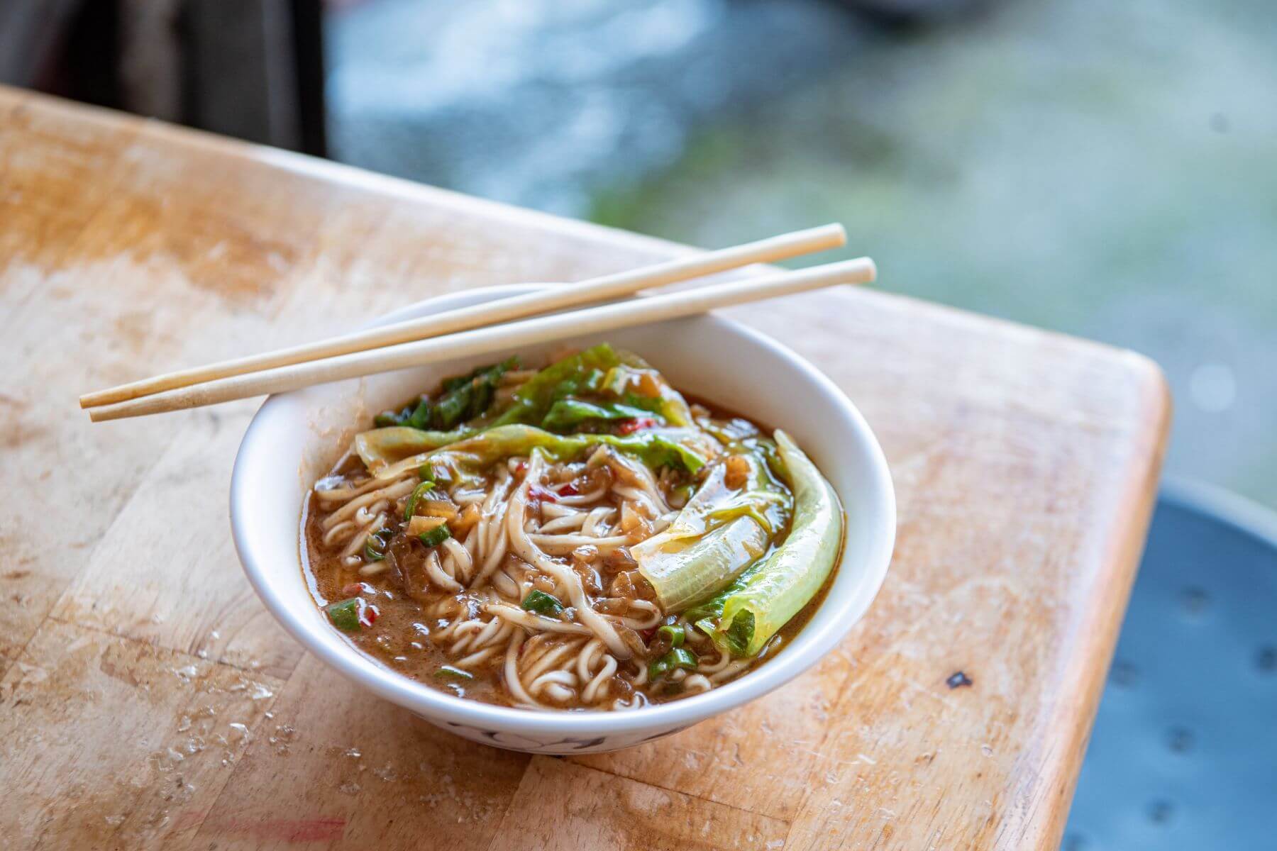 宜蘭市的「正宗四川辣担麵」,它的辣醬就是一絕,絕對讓喜歡吃辣的人魂牽夢縈。羅東的「興東路無招牌麵店」豬油乾麵,外表看起來是普通的陽春白麵,僅有一些綠色蔥花點綴,但鹹淡適中,好吃得不得了,且使用的餐具器皿十分講究—竹筷子、陶瓷碗,這幾乎就是小吃店的ESG,SDGs指數超高。