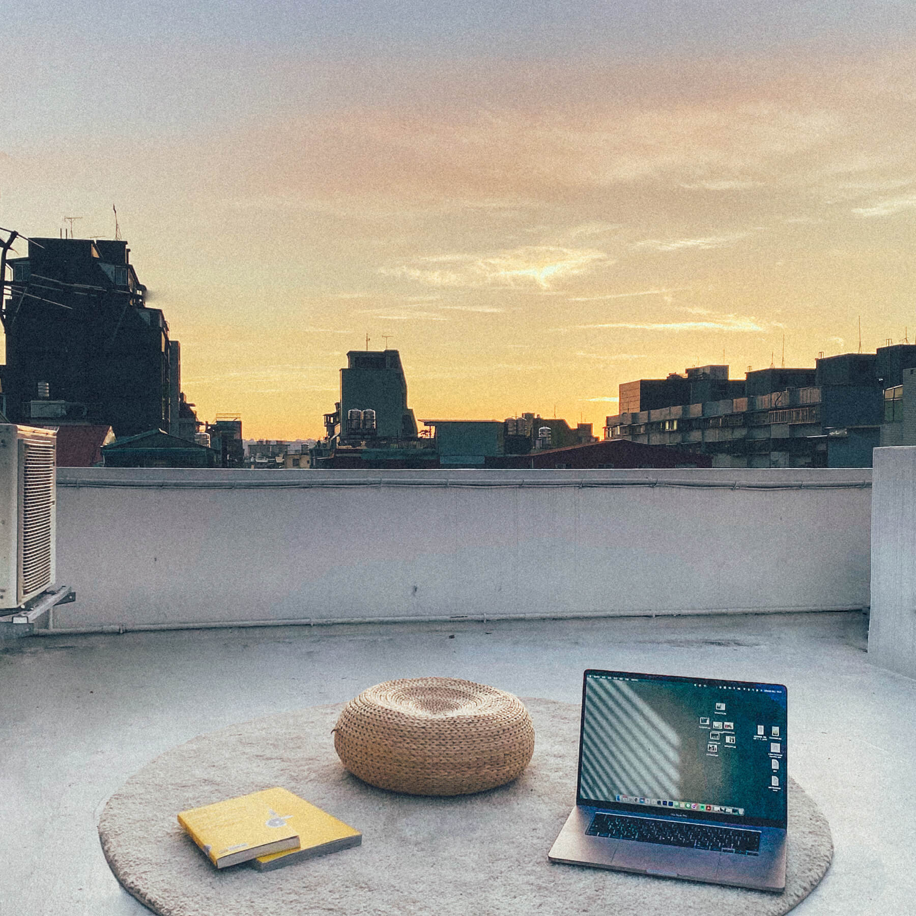 因為本來就是住家兼工作室的型態,在防疫升級之後,調整的幅度不算很大。倒是有一件事情在這段期間變成一個固定的規律:「醒來後的運動時間」。因長時間待在家中幾乎沒有出門,適逢天氣濕熱加上冷氣,身體發出了僵硬的訊號,不想辦法運動、流汗是很不舒適的狀態。以往會根據行程偶爾到健身房動一動,現在無法這麼做了,於是我就固定在醒來的第一個小時裡待在房間熱身: