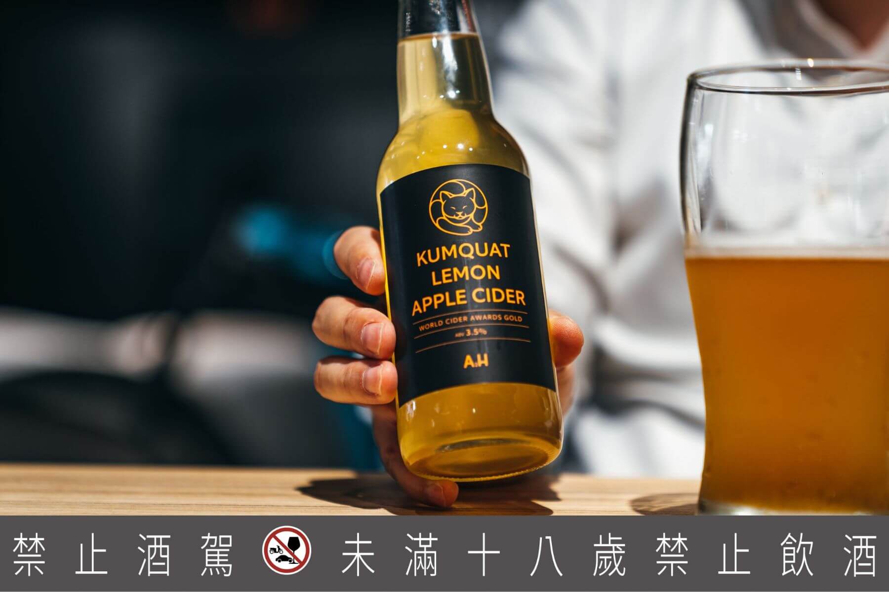 一款「金桔檸檬氣泡酒」(Kumquat Lemon Apple Cider)就是加入在地金桔與檸檬發酵精釀而成。異於多數甜味鮮明的西打(Cider),金桔、檸檬特有的天然果酸鮮明,酸感猶如沁涼入心的午後微雨令人眼睛一亮。此款Cider同時也是目前A2H最受歡迎的酒款,「甜中帶酸的酒韻清新,特別受女性顧客的喜愛。」方光瑋說。