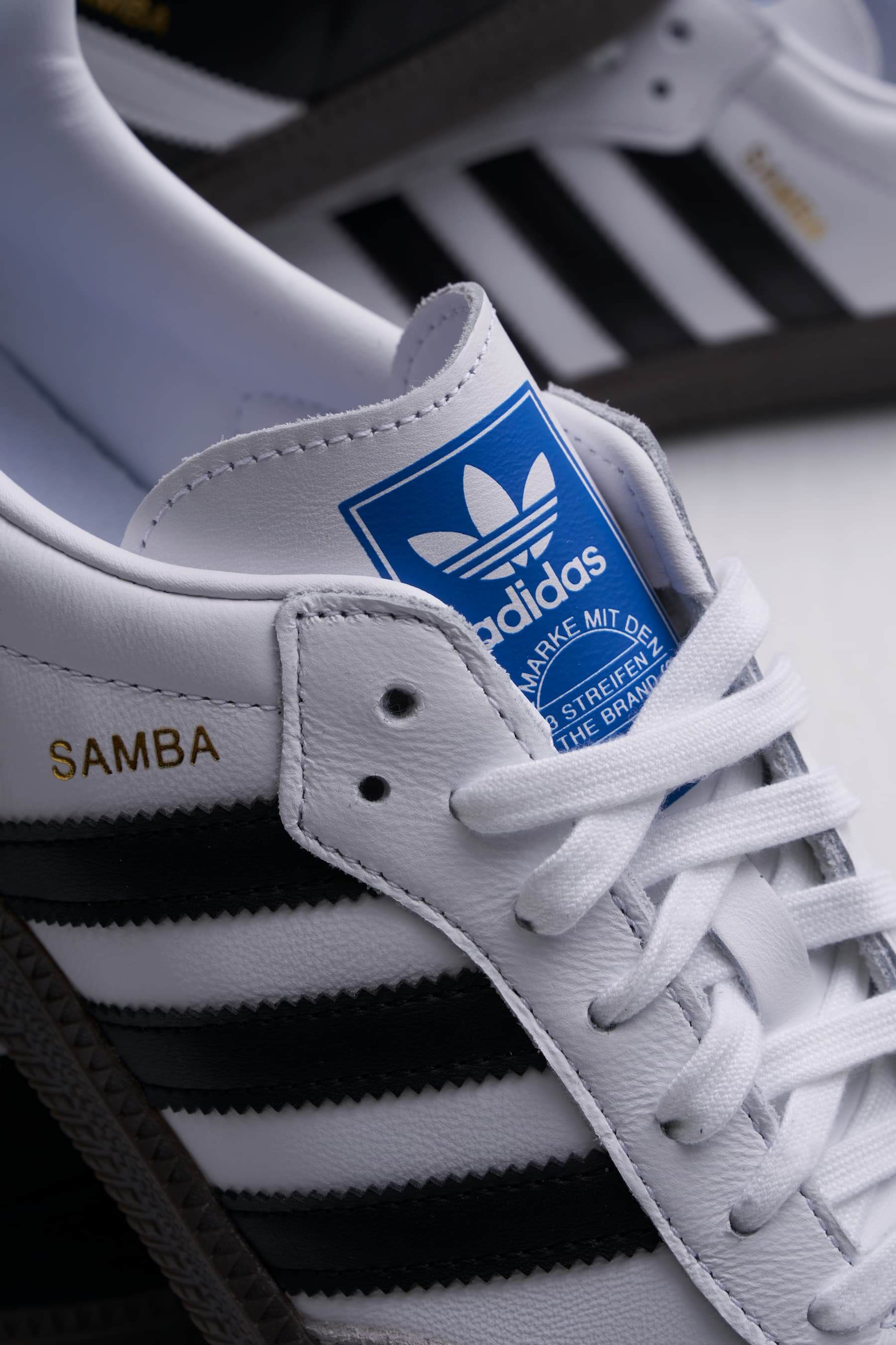 70年多年以來,SAMBA本身的設計語言已成為永恆的經典:標誌性構成元素包括T-Toe(T字形鞋頭)設計、褐色橡膠鞋底、皮革材質鞋面、燙金Logo與標誌性鋸齒三線,缺一不可。近年此雙經典之作透過潮流品牌、時裝設計師和藝術家等不同視角重塑,隨著網路社群傳播,也在全球名人與穿搭ICONs分享下獲得關注。