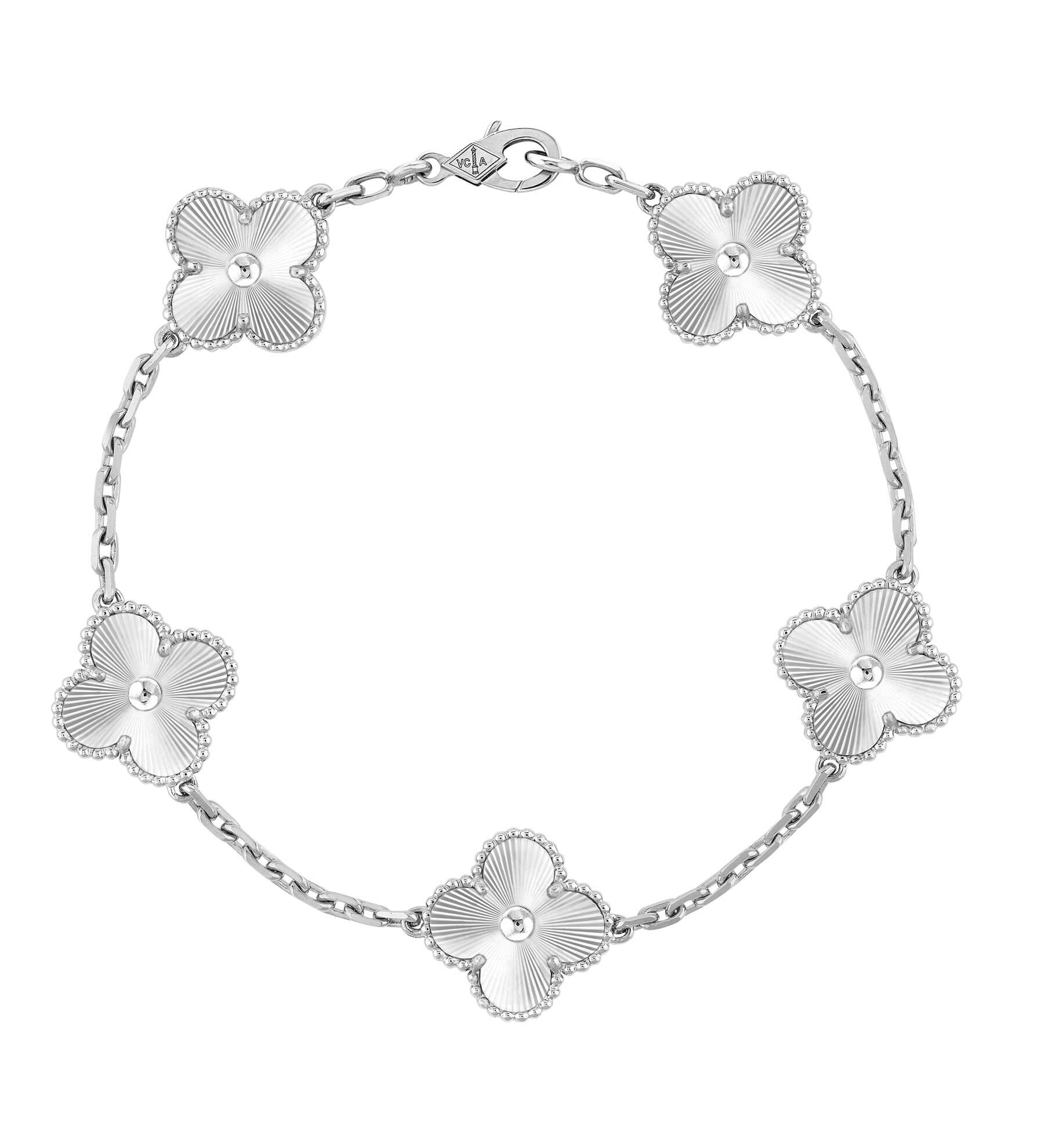 Vintage Alhambra 手鍊,5枚幸運草圖騰 白K金,guilloché。