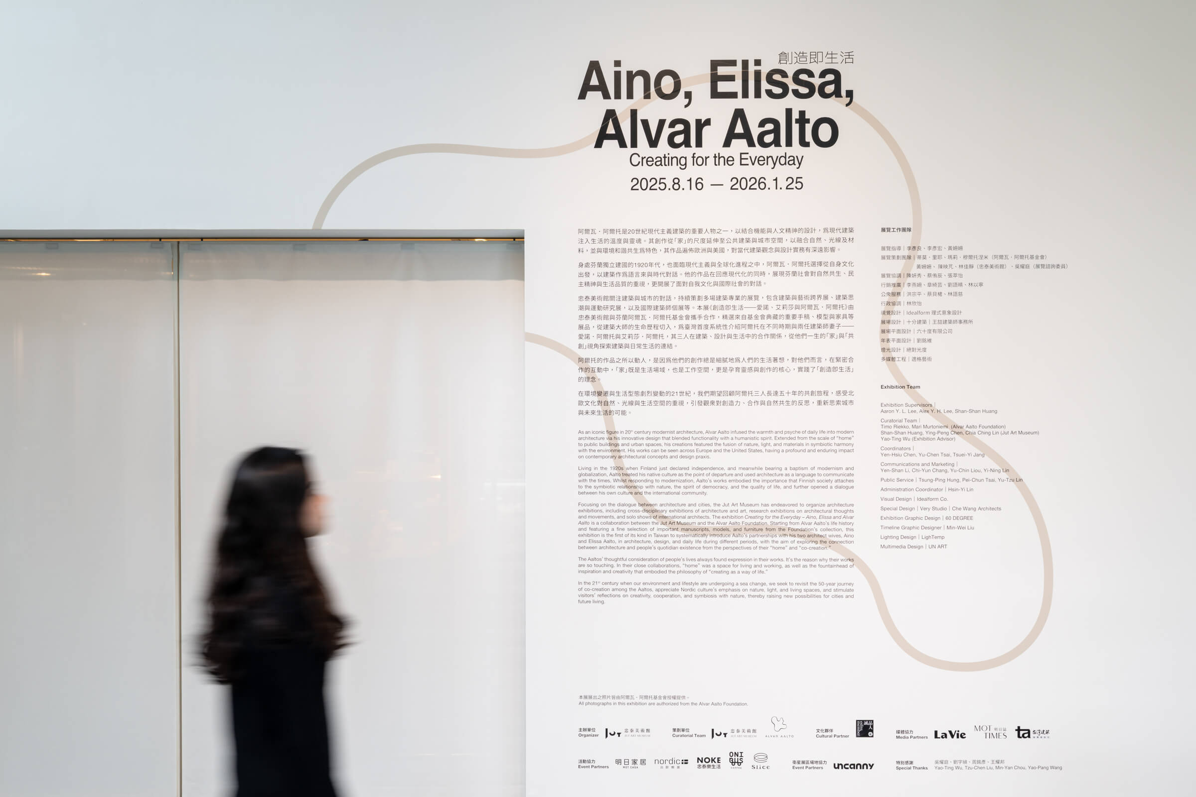 忠泰美術館與芬蘭阿爾瓦.阿爾托基金會共同策劃推出《創造即生活──愛諾、艾莉莎與阿爾瓦.阿爾托》展覽,首度聚焦阿爾瓦.阿爾托與前後兩任建築師妻子的共創歷程。呈現芬蘭國寶級建築師阿爾瓦.阿爾托的台灣首度大型回顧展,透過逾160件手稿原件、模型與設計作品,構築出一個關於「創造即生活」的北歐人文建築詩篇。