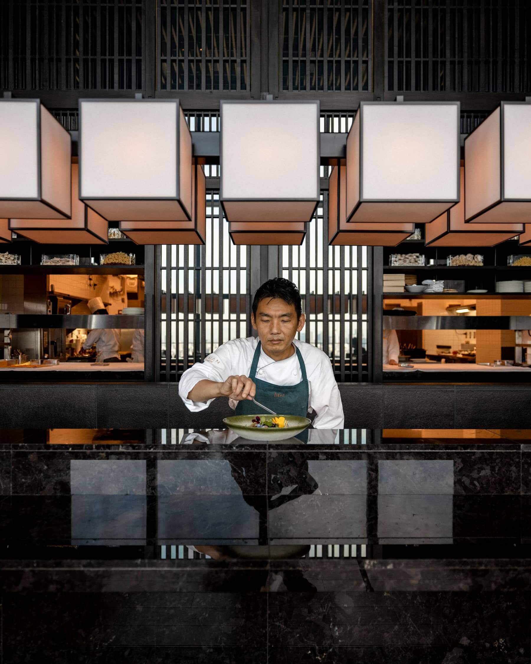 安縵東京內有四家餐廳,分別是義大利料理餐廳ARVA、僅8席的高級壽司吧「武藏」、被樹林環繞的Café by Aman,以及地下樓層的糕點店La Pâtisserie——這是全球唯一一家安縵品牌的甜點專賣店,也是融入日式風味的法式糕點。