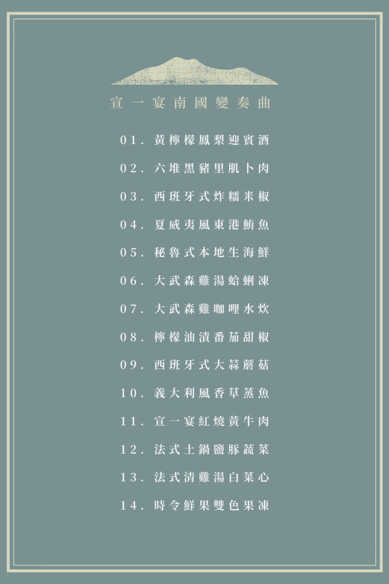 (宣一宴南國變奏曲菜單/南國漫讀節提供)