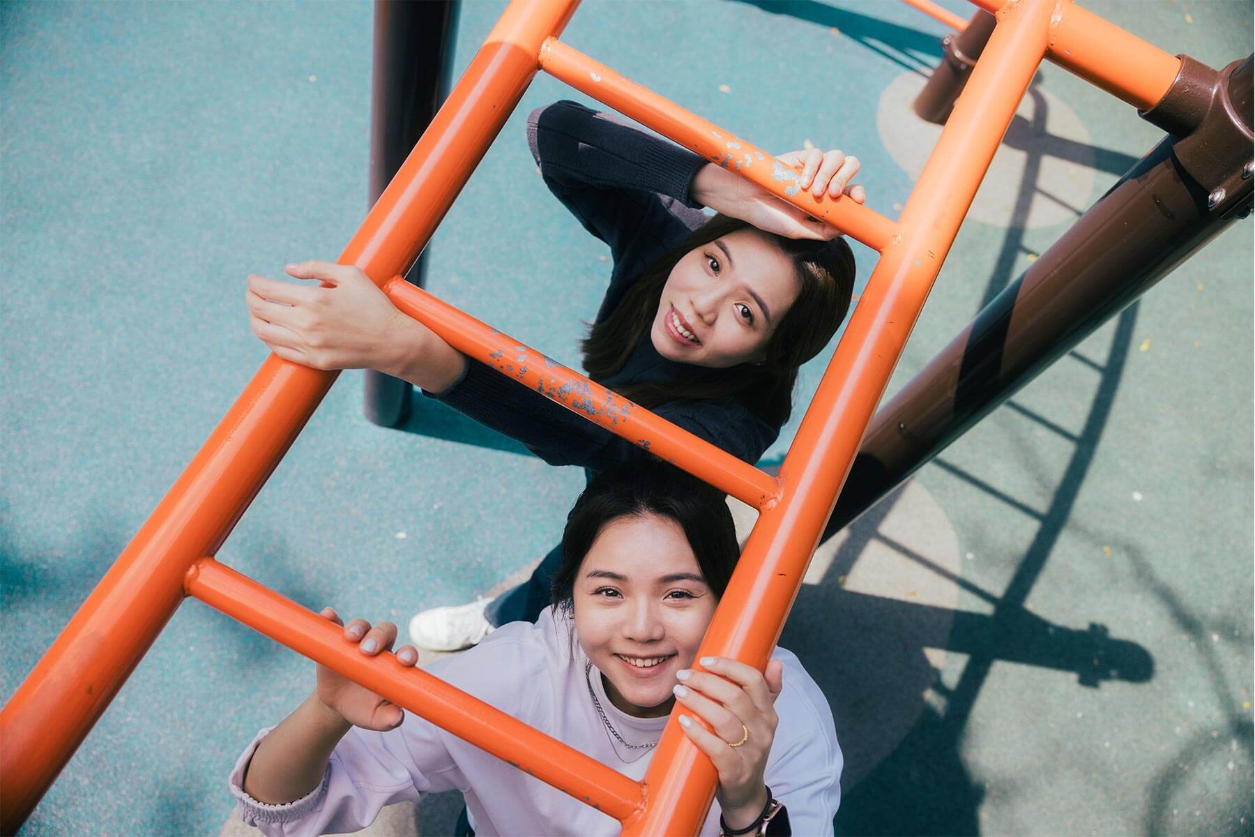 「妳看遠方有鯨魚耶!」妹妹Shine指著遠方說道。「欸!真的耶,好多隻喔!」姐姐Ariel回應著Shine的視線,驚呼附和。但事實上,兩人並未在某艘賞鯨船上,而是在工作室附近的公園溜滑梯上拍攝訪談,但那充滿默契又自然的互動方式,既是她們再普通不過的日常,更是「欸你這週要幹嘛」YouTube頻道訂閱數超過103萬的魅力。