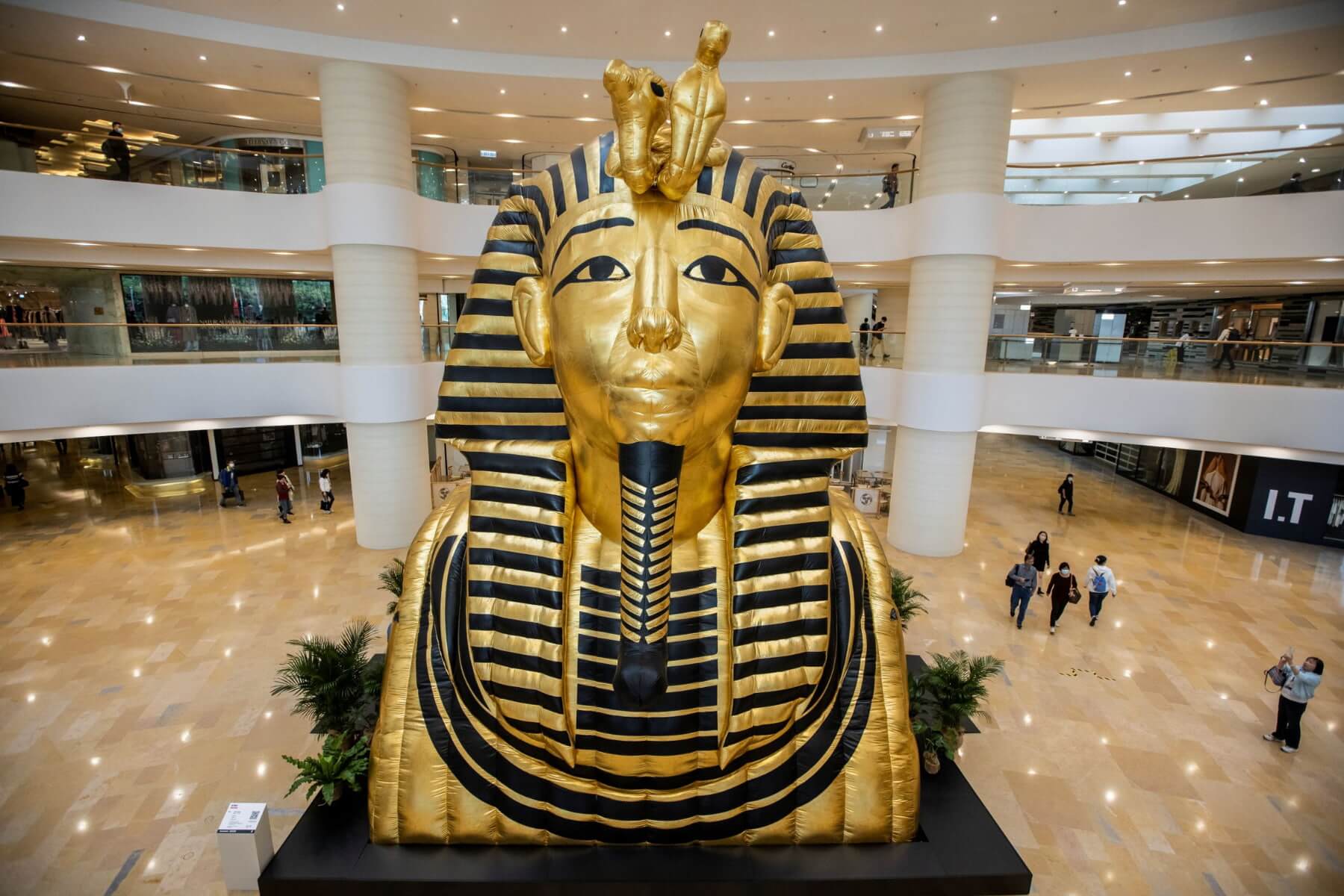 2023年香港巴塞爾藝術展期間,於金鐘太古廣場展出的10公尺高埃及法老像《重力》。