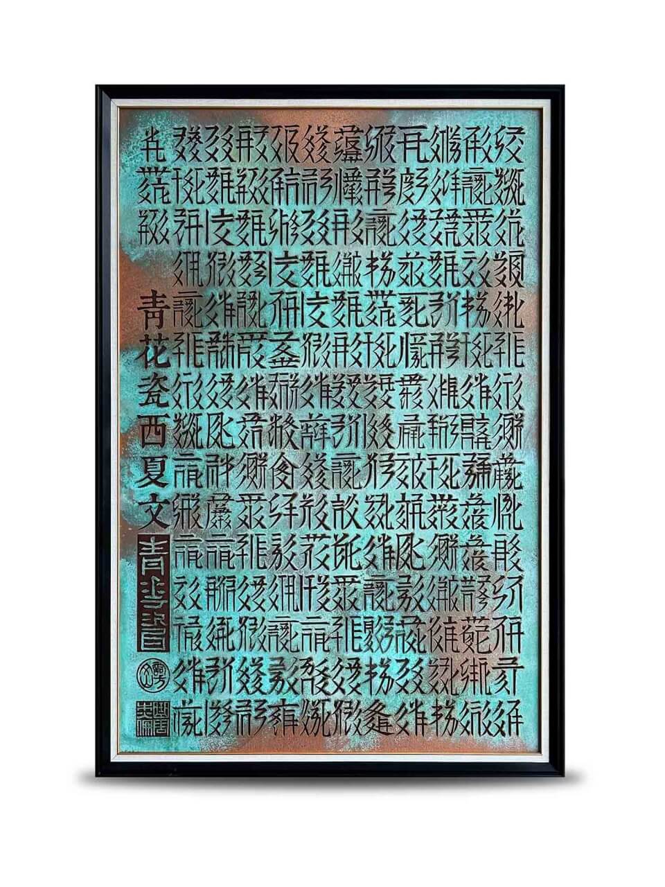知名的金曲獎作詞人方文山,打造傳統與現代、音樂與視覺藝術之間的和諧共鳴。作品如〈歌詞裝置藝術〉系列中的《就當我為遇見妳伏筆》,為周杰倫創作的《青花瓷》歌詞轉成西夏文,以鐵鏽、銅綠上色,巧妙運用西夏文字對稱均勻的結構和平衡美特性,呈現出濃厚的歷史感、神秘感,與獨特的藝術張力。