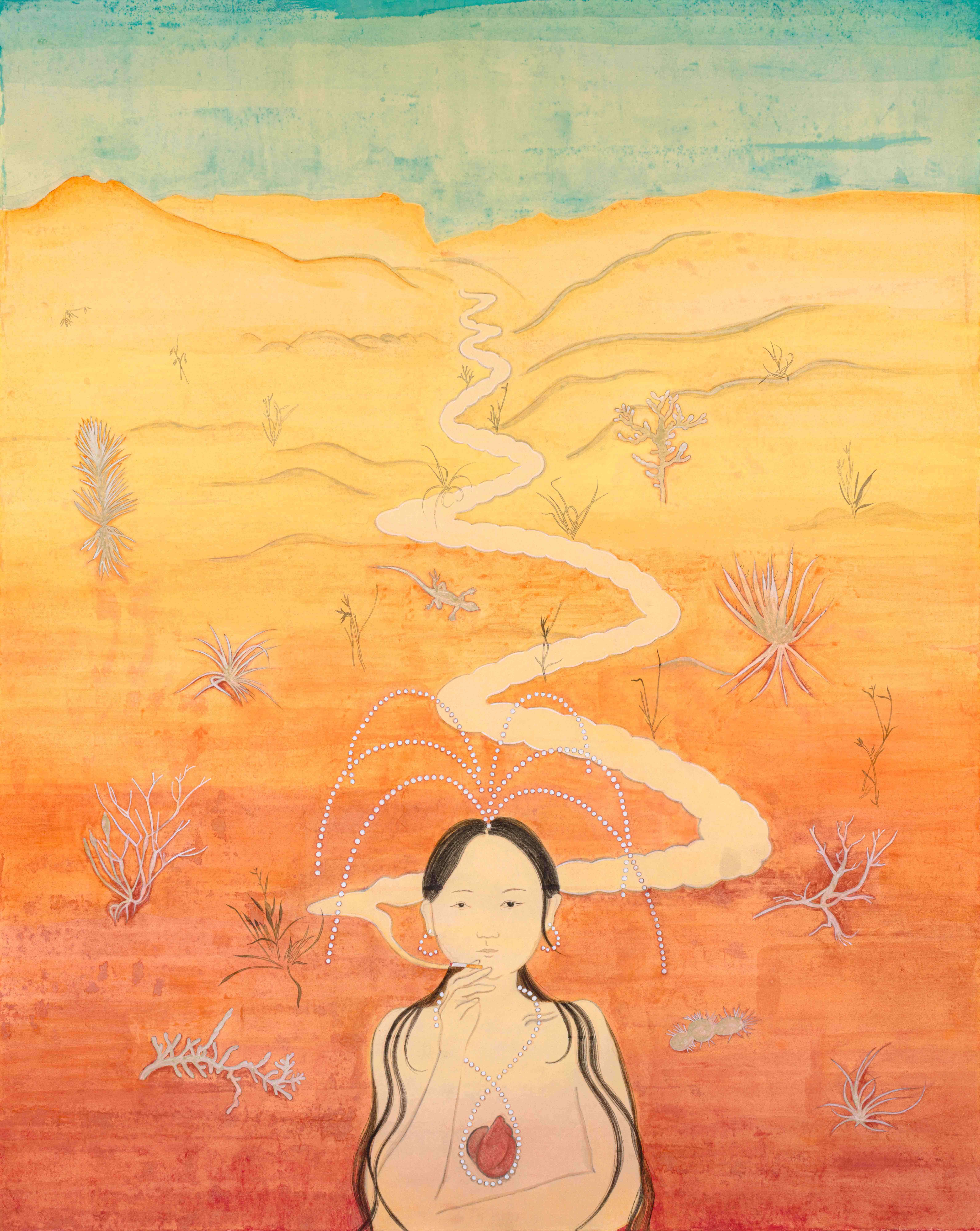《沙漠的女神》這件作品源自於她在美國猶他州藝術駐村的靈感,她試圖將猶他州著名的沙漠風景意象,融入中國水墨畫的表現手法。