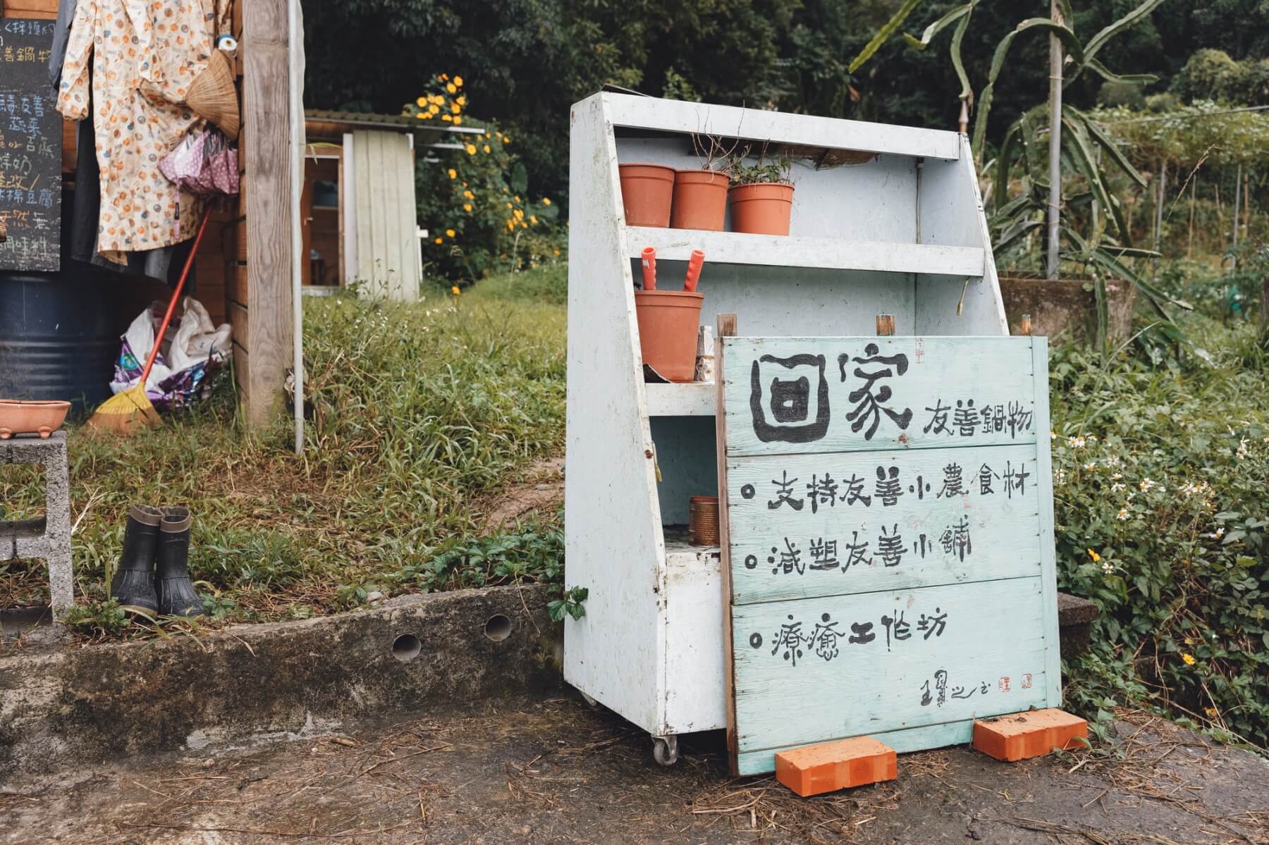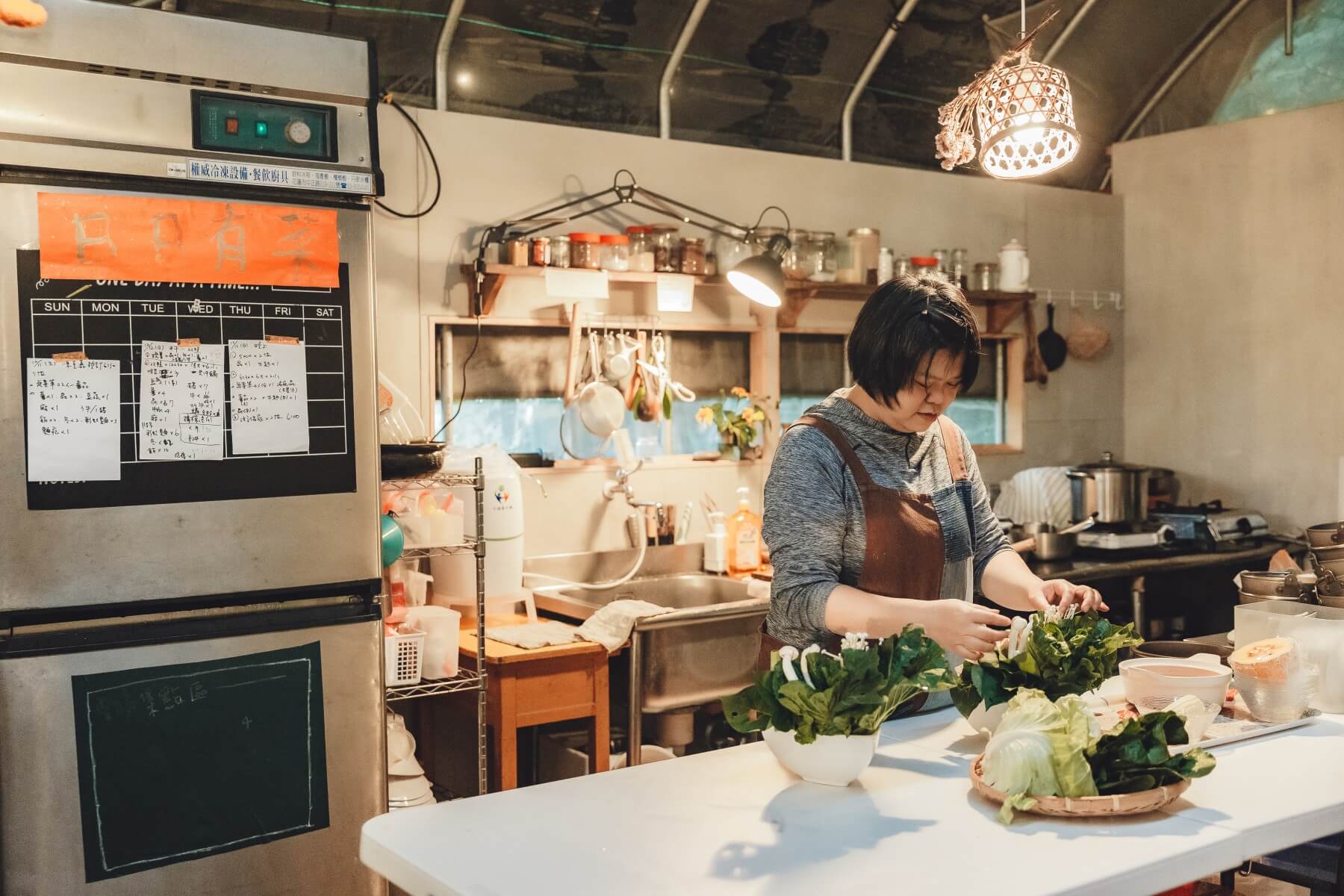 時間已過午後,空氣中混雜著青草、土壤和雨水的氣味,回家吃鍋的老闆廖沛婕在廚房忙碌,準備將稍早才收成的鮮嫩蔬蔌和一鍋鍋濃郁熱湯端上餐桌。這裡採全預約制,只販售有機食材製作的餐點,一人廚房,一人服務,也一心一意地將食物的原味之美帶給味蕾。