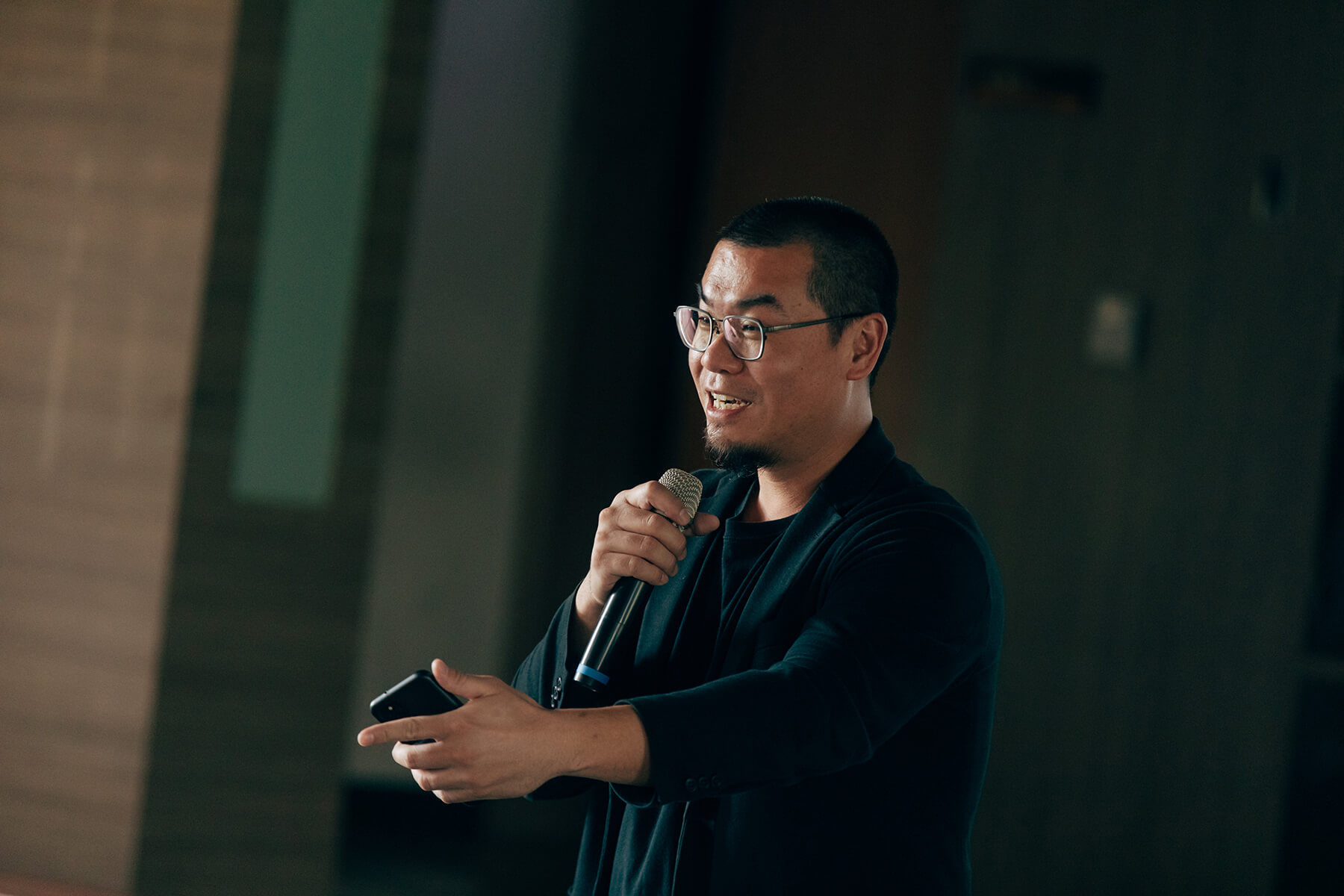 awoo創辦人林思吾在3月於嘉義文創園區「島南創聚」活動中主講。(圖/awoo阿物提供)