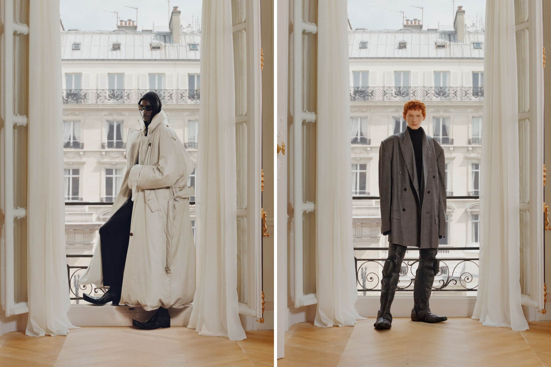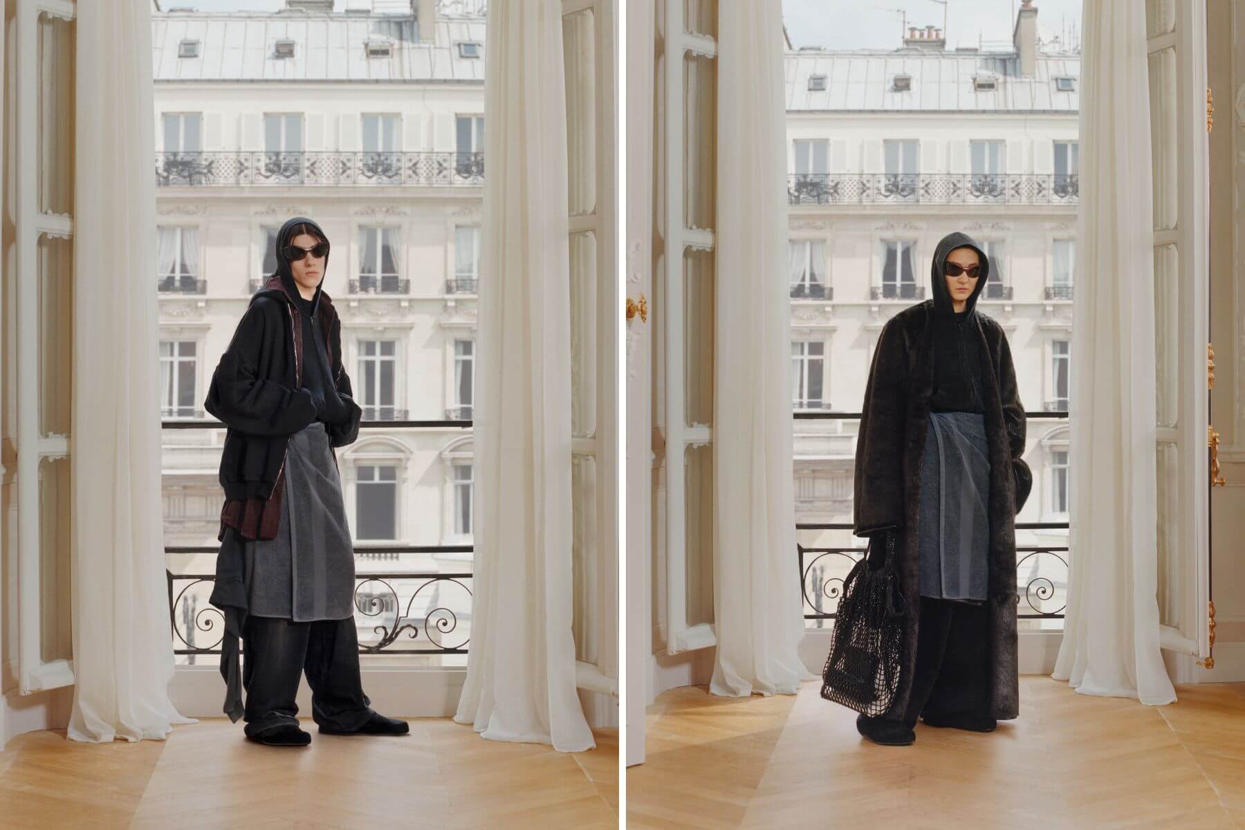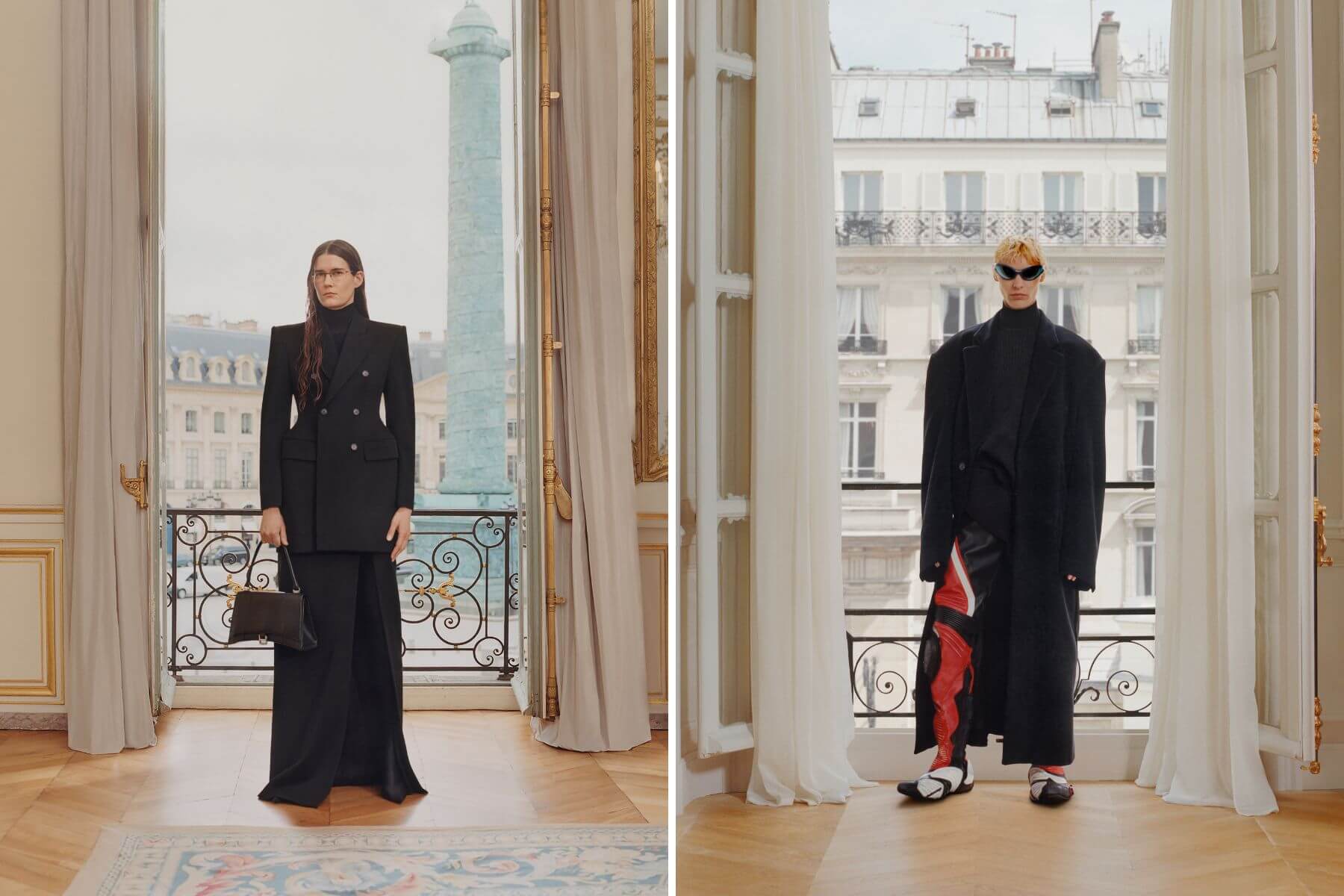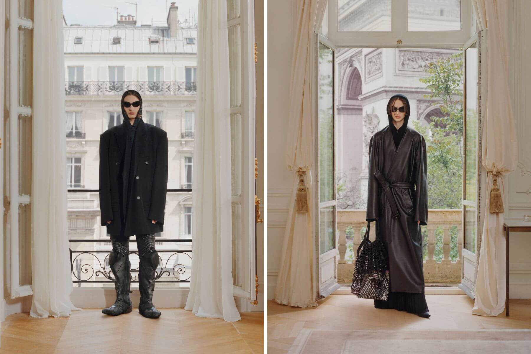 晚宴服使用輕薄的平紋衝浪服材質或科技縐紗製成,帶來別開生面的輕盈感。Biker機車靴也翻新成為連褲版,帶來近乎高訂設計的完美色澤。Demna以「穿Balenciaga的人們」的生活定錨,觀察並分析當代社會後所作出的解釋與應對,以此系列回歸身為服裝設計師的原點與初衷。