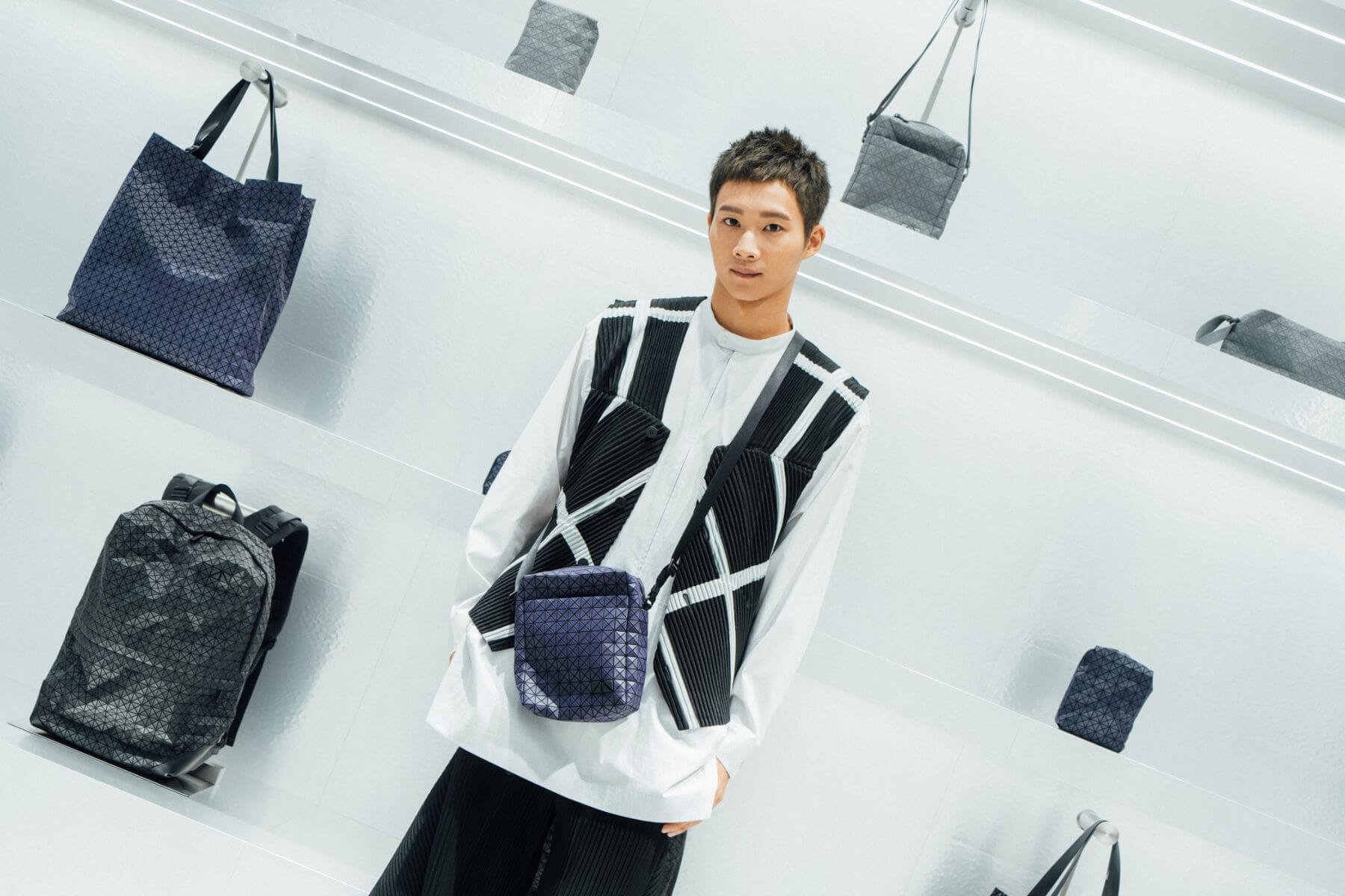 近期在《八尺門的辯護人》中表現驚艷四座的雷嘉汭示範 BAO BAO ISSEY MIYAKE 最新「星雲鋁金」系列包款。