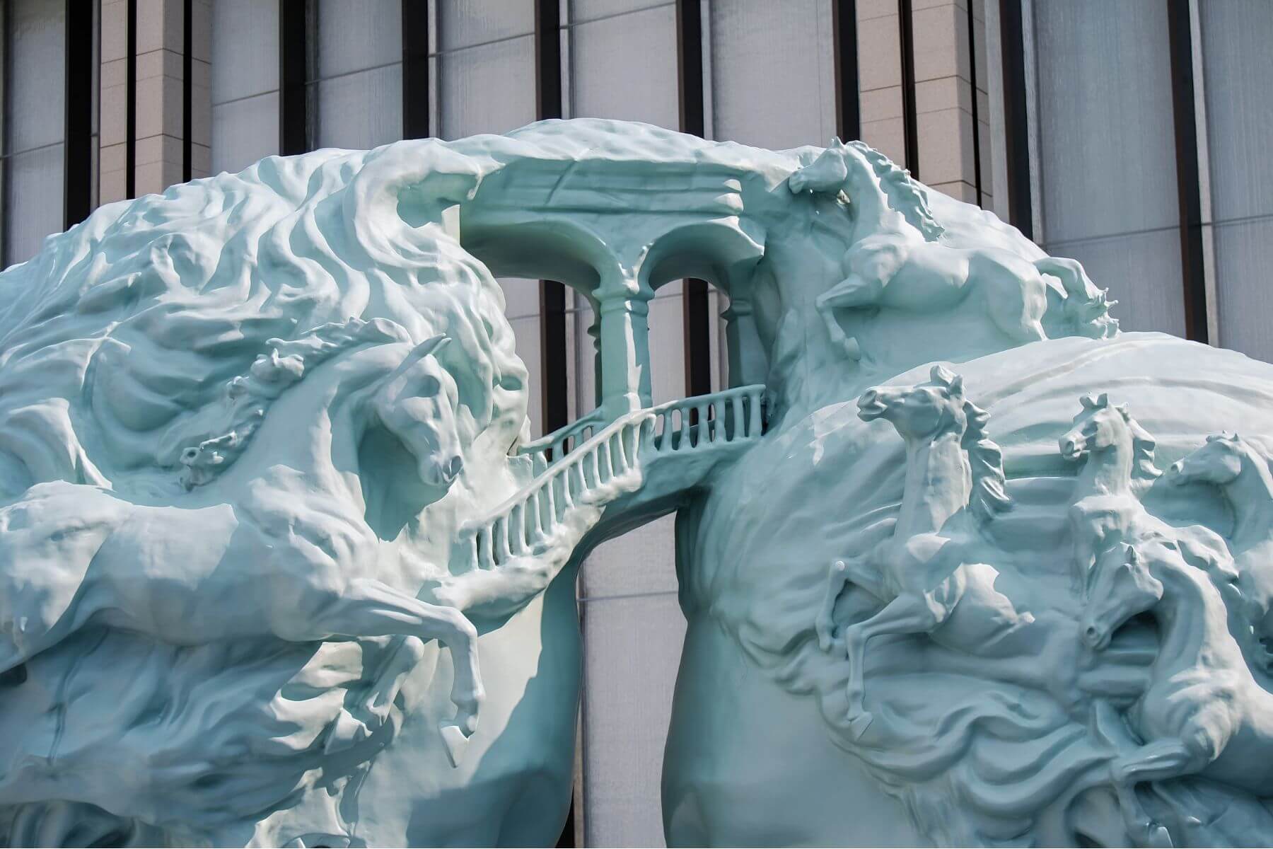 這件作品最引人入勝之處,在於其內部的微觀構造:在巨大的崩裂鏤空結構中,刻劃了極其複雜的螺旋樓梯與微型人影。這種尺度的反差,讓觀者的視線從巨大的公共場域,瞬間被拉進一座精密的微型迷宮。這座地標不僅是進入度假村的必經之路,更像是一個切換現實與想像的視覺分界點;它提醒著每一位旅人,暫時放下城區的繁華喧囂,好好享受這由純粹想像力構築的夢幻之地。