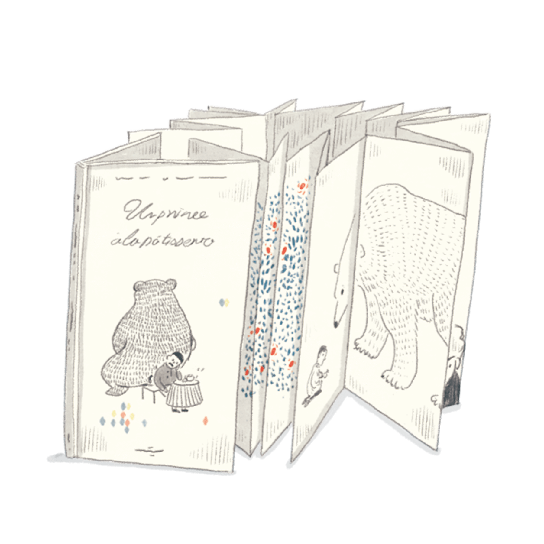 論幸福,幸福論 這是一個哲學故事,對於幸福以及其脆弱的對話與反思。何謂幸福?何謂快樂?不幸是否會發生?我是否不快樂?幸福會平白從天而降嗎?我現在這麼快樂,會不會等等就不開心?長達六公尺的風琴頁,是為了讓讀者能在閱讀文字的同時,從畫面前後流動而思考,不中斷思緒。也可以因中斷,有不同的閱讀體驗。 ![]() |
