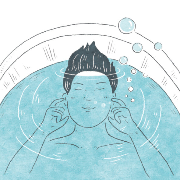 ❷ 在浴池裡,用手指把耳朵堵住,閉起眼睛,深呼吸,閉氣,把全身包括頭部浸入水中,從心深處感受自己的存在,並在心裡輕輕問:「沒有了名字和記憶,我是誰?」 ![]() |