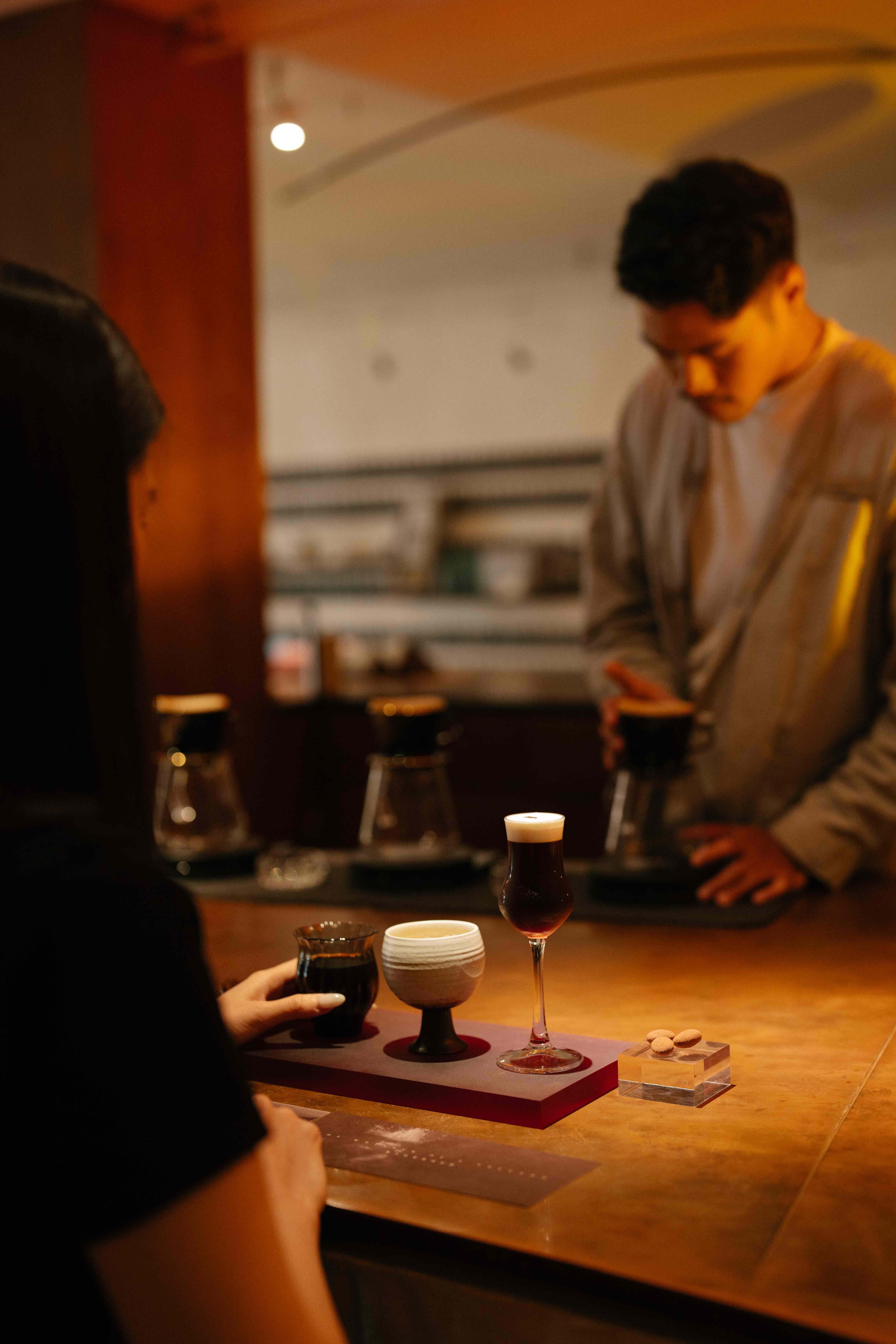 火山尚未噴發,卻已脈動不止。以熱手沖演繹沉穩原豆風味,熱氣蒸騰的咖啡自杯中升起,帶著燒焦木材與泥土的氣息,猶如立於火山口旁。現場播放深沉低頻的搖滾樂曲,彷彿耳邊傳來遠方岩層的震顫,為旅程揭開序幕。