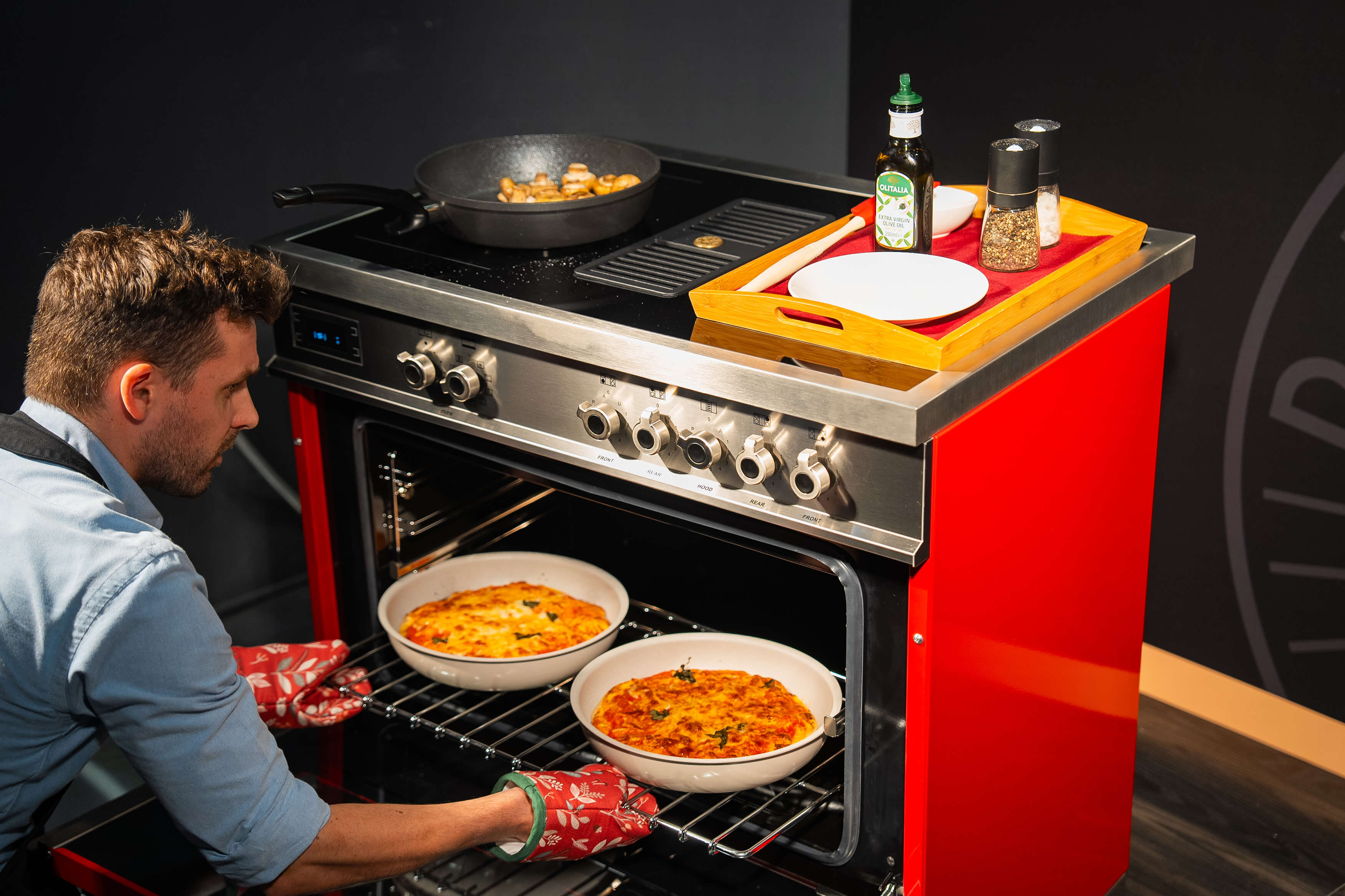 冬日午後的陽光透過落地窗灑進嘉儀企業台北民生旗艦展示中心,位於廚房那台色澤飽滿的紅色爐連烤,如同一輛停駐在料理舞台上的義大利超跑,吸引著所有人的目光。來自義大利Verona的主廚Andrea Trevisan正熟練地揉著麵糰,準備示範他祖母傳承下來的經典義大利麵疙瘩。