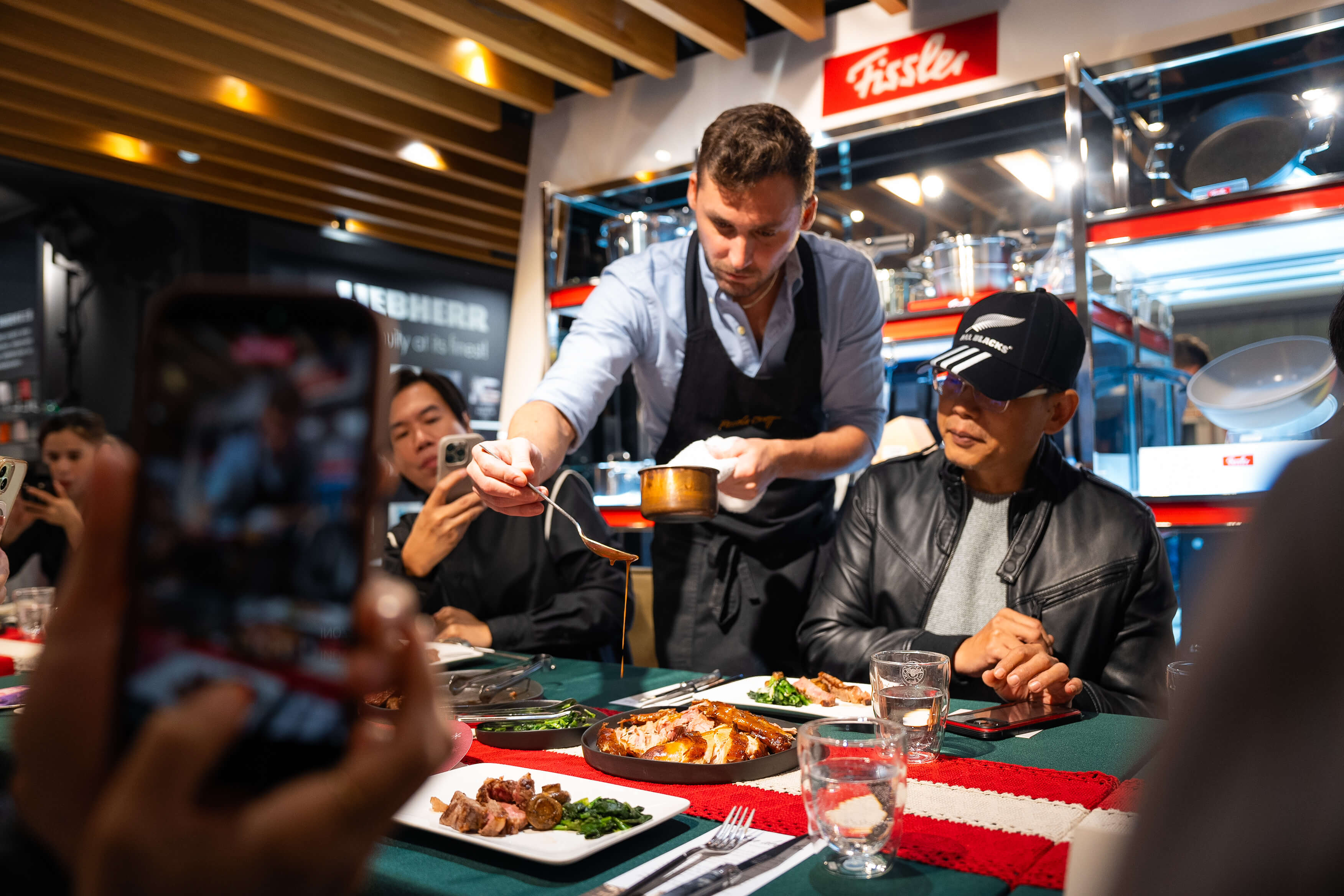 進入主菜時刻,Andrea 同時端上了 Tagliata di Manzo(肋眼牛排) 與 Tacchino Arrosto Natalizio(聖誕火雞),完美呼應了聖誕的歡慶氣息。肋眼牛排在瓦斯爐上以高溫快速煎炙,而聖誕火雞則展現Air-Tec烤箱的優異性能——透過電子觸控螢幕設定,搭配數位食物探針,火雞的每一個部位都烤得恰到好處,表皮金黃酥脆,肉質卻依然濕潤柔軟。