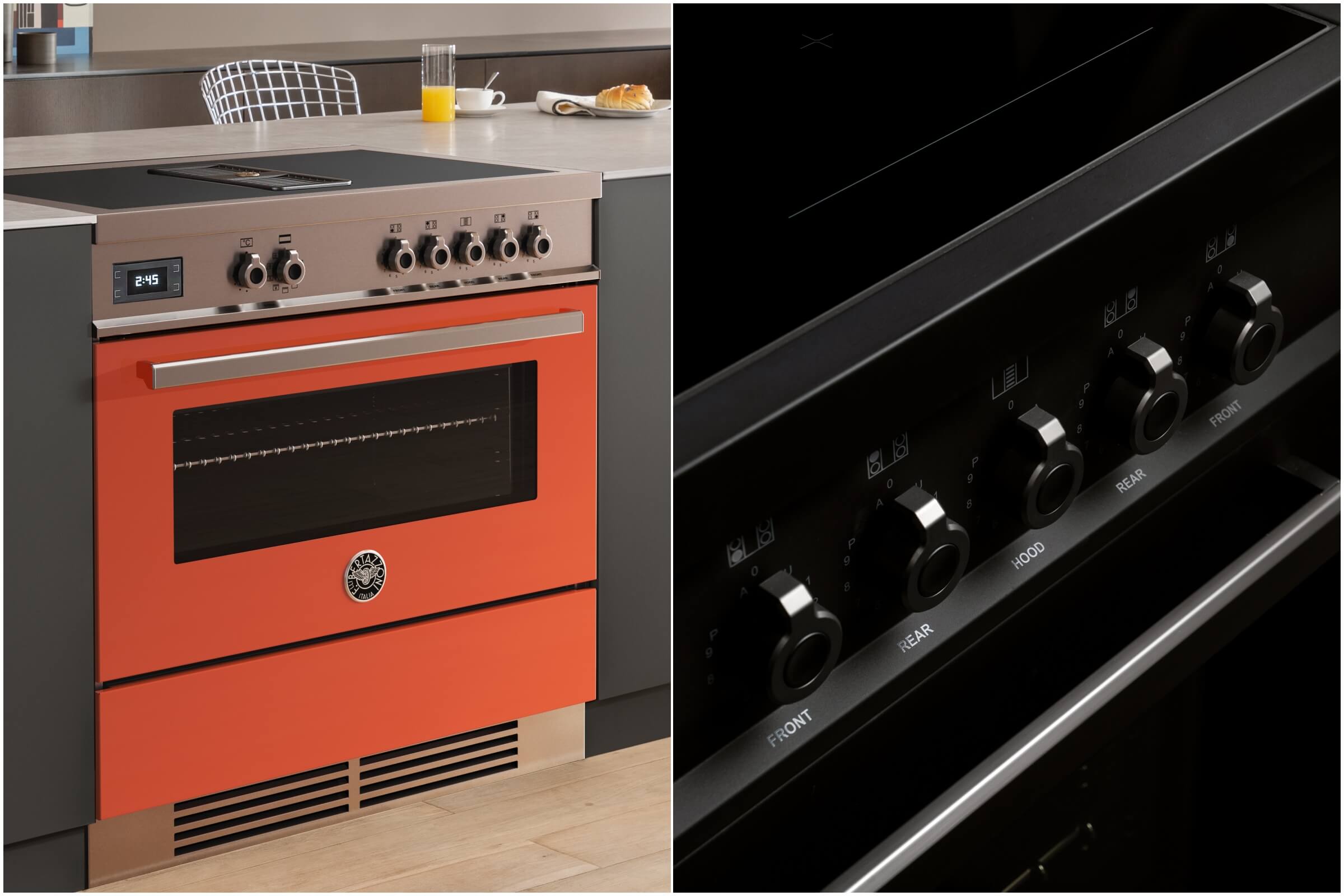 這款榮獲2023年建築文摘設計獎(Architectural Digest Great Design Awards)的烤爐,結合高效四口感應爐、檯面式抽油煙機與103L大容量烤箱,以極簡俐落的平面設計,完美解決了開放式廚房的美學與機能需求。更令人驚豔的是,它採用了義大利頂級超跑同級的烤漆工藝,提供紅色、碳黑、白色、橘色、黃色、黑色及不鏽鋼等多種飾板選擇,讓廚電不再只是功能性設備,而是空間中的藝術焦點。