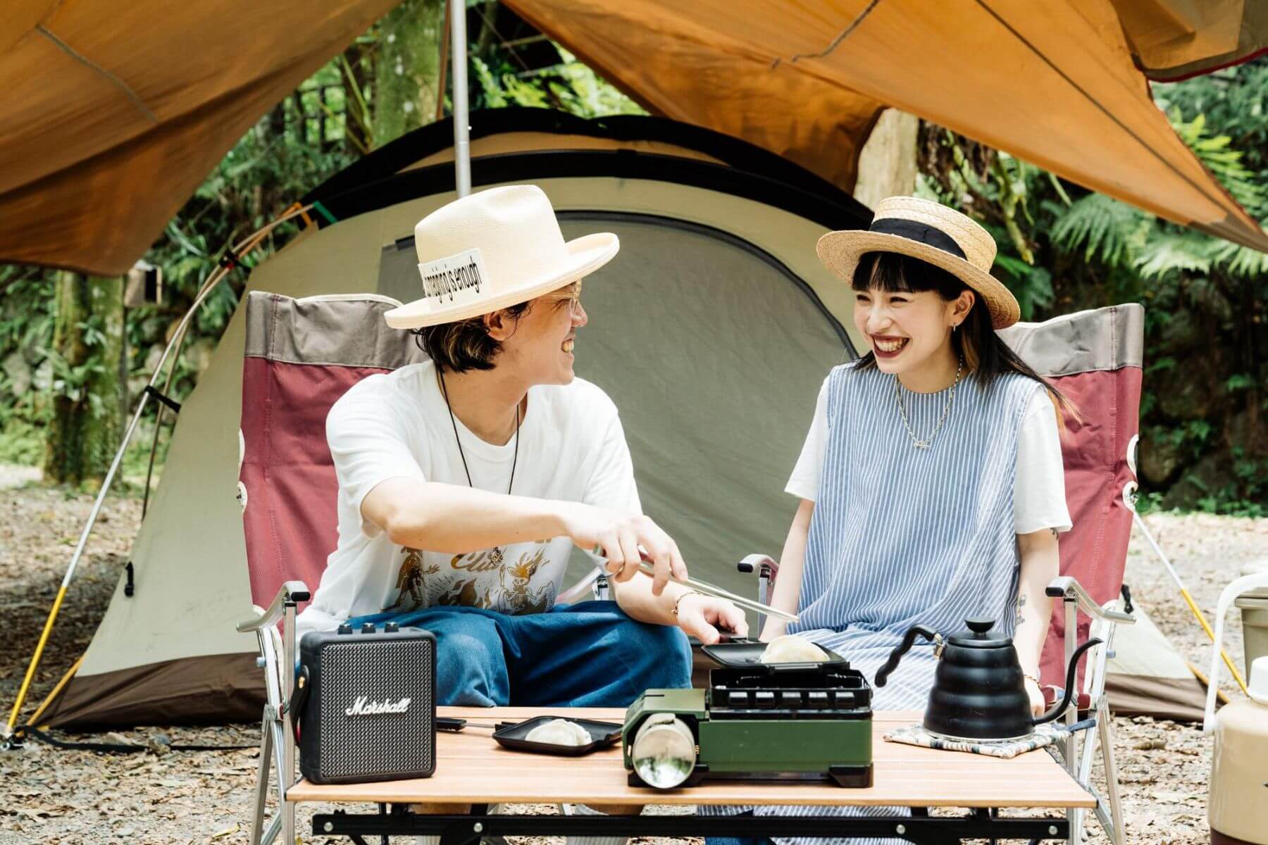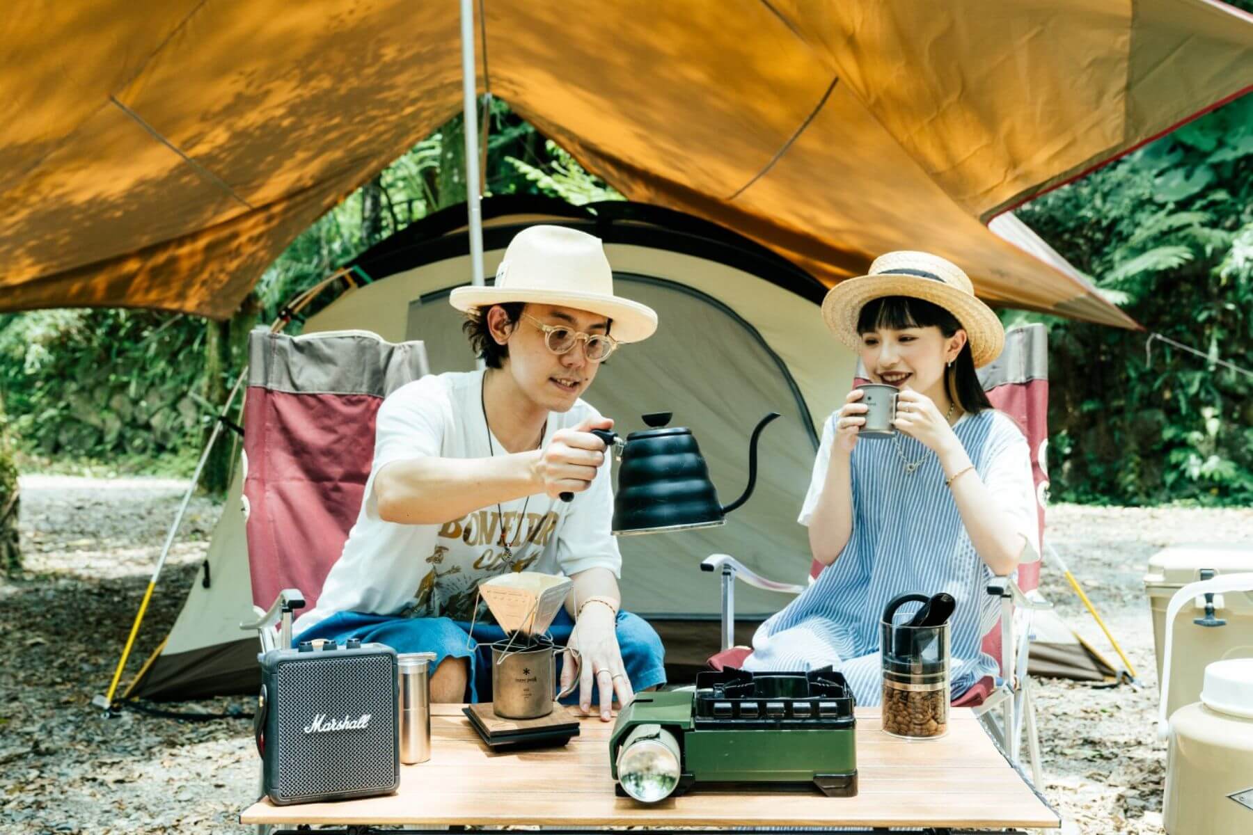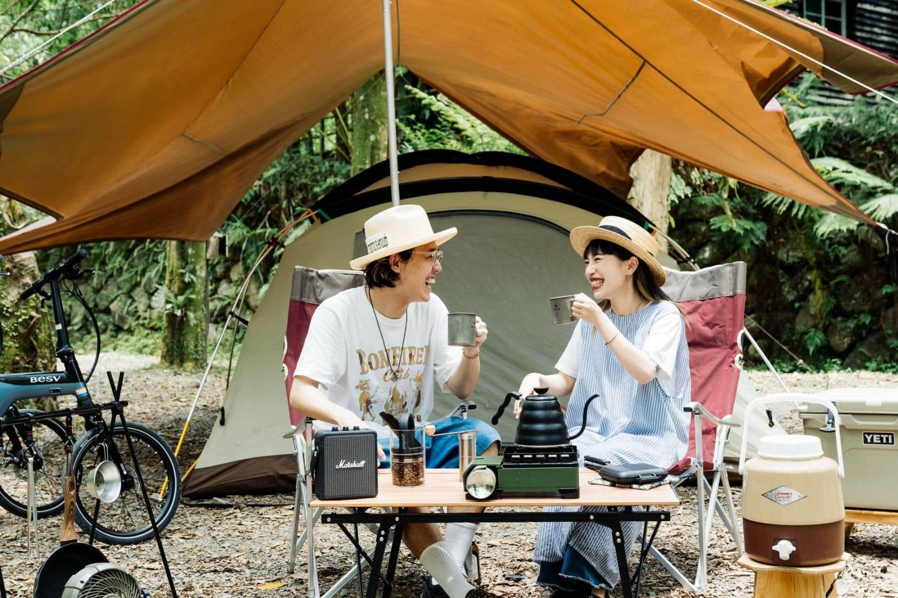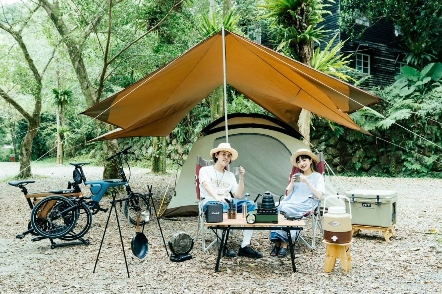 選定營地後,開始搭帳、立起天幕,Halu 和 Kiki 憑藉著對日本流行文化的熱愛,從服裝出發,對於日常使用的東西保有一定的品味堅持,從鍋爐、桌椅、帳篷,到單車、隨身音響,甚至是播放的音樂,彷彿日雜《POPEYE》的 City boy & girl 重現在真實生活。