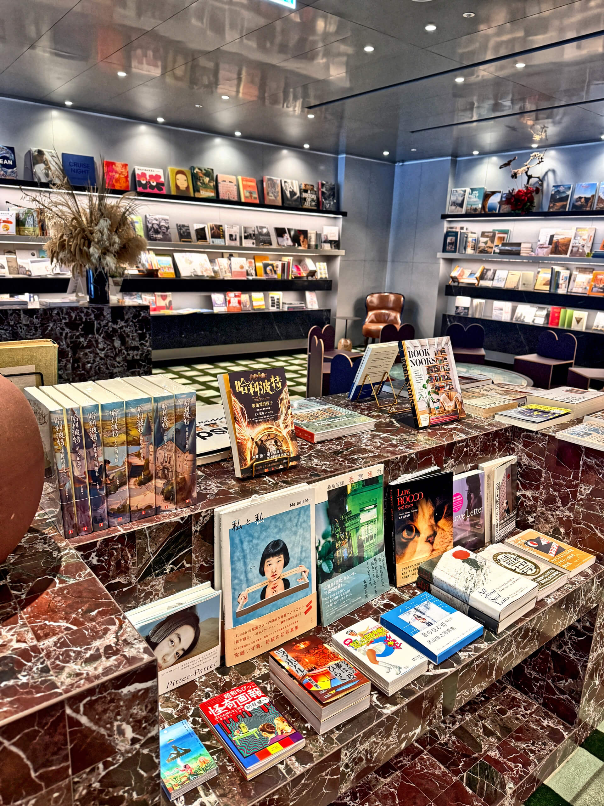 位於後段空間的深色大理石吧檯,設計靈感來自「城市書房的廚房」,提供義式咖啡與茶飲、精選甜點與輕食、夜間調酒體驗,與季節性推出的青鳥小料理。這裡不只是書店,更是城市生活的停駐點,無論是一杯中午的美式,還是下班後的一杯琴酒,每一次小停留,都是閱讀與生活交錯的片刻。