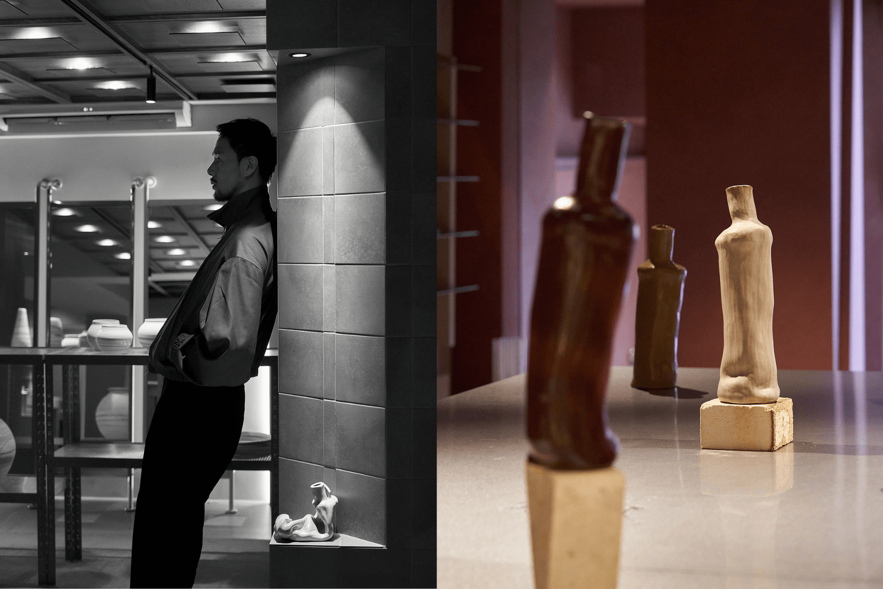 從演藝身份跨界藝術領域的丁春誠,近年來周遊各國尋找靈感,並親自沉浸於陶藝創作。這場展覽籌備過程中,他產出了上百件作品,但基於對作品質感的極致要求,最終現場呈現的僅是萬中選一的精華。展覽以陶作為主要媒介,從「站立」這一最基本卻最容易被忽略的身體狀態出發,深入探討個體如何在既定的結構與現實條件中,找回成立自身的位置。