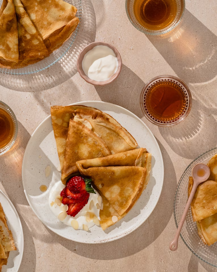 當我想起布列塔尼,第一個想到的就是可麗餅。令我墜入愛河的滋味之一:蕎麥可麗餅,在街角的小平爐上製作,盡可能地薄,塗奶油並灑一點糖,然後稍微淋一些柑曼怡香甜酒(Grand Marnier)。可麗餅不只一種。捲起來配果醬吃的那種小小白白的薄煎餅可以非常美味。但我說的是蕎麥可麗餅,你也可以配一些鹹的料吃,如果你想要的話。在布列塔尼,可麗餅可以加淡菜。我確實喜歡巴黎街角賣的那些可麗餅,但造訪布列塔尼後,我真心愛上了蕎麥——還有蘋果汁!在當時的法國,特色菜只在特定地方吃得到——可麗餅分布在布列塔尼,巴黎也有一點,但其他地方就吃不到了。法國人重視在地食物。我也吃了布列塔尼的牡蠣——那是全法國享用牡蠣最棒的地方。在吃可麗餅之前,我們會點一打現開的半殼牡蠣。它們剛被撈上岸,在我們面前打開,然後直接端上桌!我心目中的完美牡蠣是:貝隆牡蠣(Belon oyster )。
