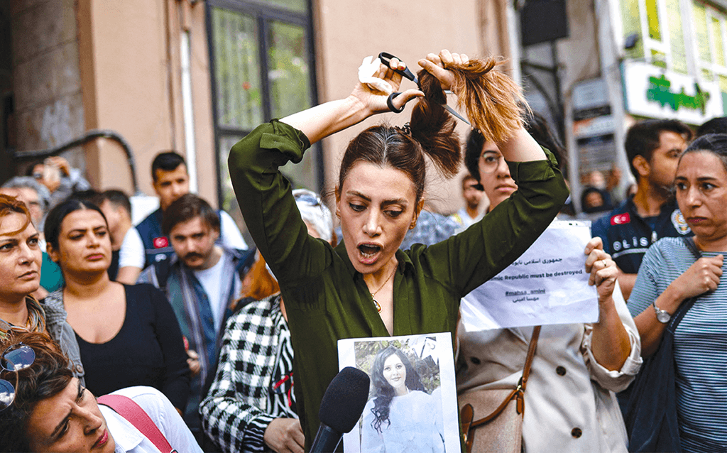 又過了一年,來自庫德地區的一名伊朗女孩前去探望在德黑蘭生活的哥哥。她的頭巾沒有遮好頭髮,至少在巡邏的兩個道德警察眼裡就是這樣。他們將她帶上囚車,理由是「衣著不當」。她的哥哥與堂兄抗議,但警察安撫他們:最多一小時罷了,提醒她遵守現行服儀規範而已。不久之後,大家發現女孩身在醫院,已經陷入昏迷。當局聲稱他們什麼都沒做,沒碰她,她是自己倒下的,像朵玫瑰凋謝了,這在二十二歲的年輕女孩身上太常見了。腦部掃描顯示顱骨骨折、出血與水腫——一切跡象都顯示她頭部反覆遭人重擊。同房的女囚也明確表示:囚車上,警察辱罵她;看守所內,他們毒打她至昏迷。幾天後,在伊朗庫德地區的薩蓋茲(Saqqez),少女的葬禮引發示威,遭到警方驅散。然而,瑪莎.艾米尼(Mahsa Amini)這個名字,人們卻口耳相傳,迅速傳遍全國,起初竊竊低語,接著成為街頭與廣場此起彼落的怒吼,響徹德黑蘭、伊斯法罕(Ispahan)、馬哈巴德(Mahabad)與大布里士(Tabriz)的大學校園。大家隨之目睹了完全無法置信的景象。在設拉子(Chiraz),人們看見一名少女高踞車頂,手執頭巾,大喊「讓獨裁者死!」;在克曼(Kerman),大學女生焚燒頭巾並圍繞火堆起舞;在德黑蘭的一所中學,高中女生頭髮披散,對哈米尼大阿亞圖拉(Grand Ayatollah Ali Khamenei)的玉照比中指;全伊朗的女人們,髮絲飛揚、手握石塊,準備挑戰政權。但這個政權從不放任怒火自由燃燒。起義爆發八週後,死者已達三百一十四人,其中有四十七個小朋友。在加茲溫(Qazvin),賈瓦德.海達里(Javad Heydari)之妹於兄長墓前剪去長髮;在克曼沙阿(Kermanshah),羅雅.琵瑞(Roya Piraie)昂首站在母親墓前,頭已剃光,握著自己那撮紅髮,目光堅定而挑釁。然後還有監獄裡的「小人物們」。短短六十天,已有一萬四千名伊朗人被投入伊斯蘭共和國的牢獄——外加四十餘名外國人。徒步前往卡達參加足球世界盃,途中憑弔瑪莎.艾米尼之墓的西班牙人:入獄。在Instagram上讚嘆伊朗人民勇氣的義大利女子:入獄。