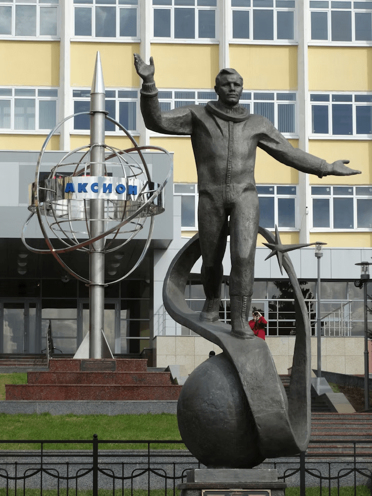 為紀念尤里·加加林太空飛行55週年的紀念碑。(圖片來源:維基百科)