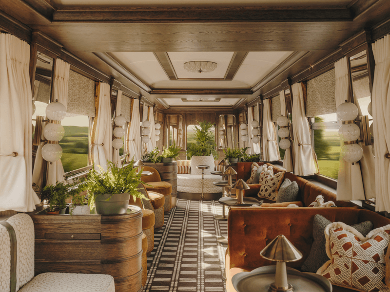 列車內部設計由倫敦著名的設計工作室Albion Nord攜手知名設計師Luke Edward Hall、藝術家Mel Campion和Olly Fathers精心打造。步入車廂,一股優雅與考究的精緻感撲面而來,英式巧思與魅力完美融入每一個細節。大膽而層次豐富的織物設計與精心挑選的古董陳設相得益彰,共同營造出獨特且富有內涵的美學風格,既雋永又不失現代感。
