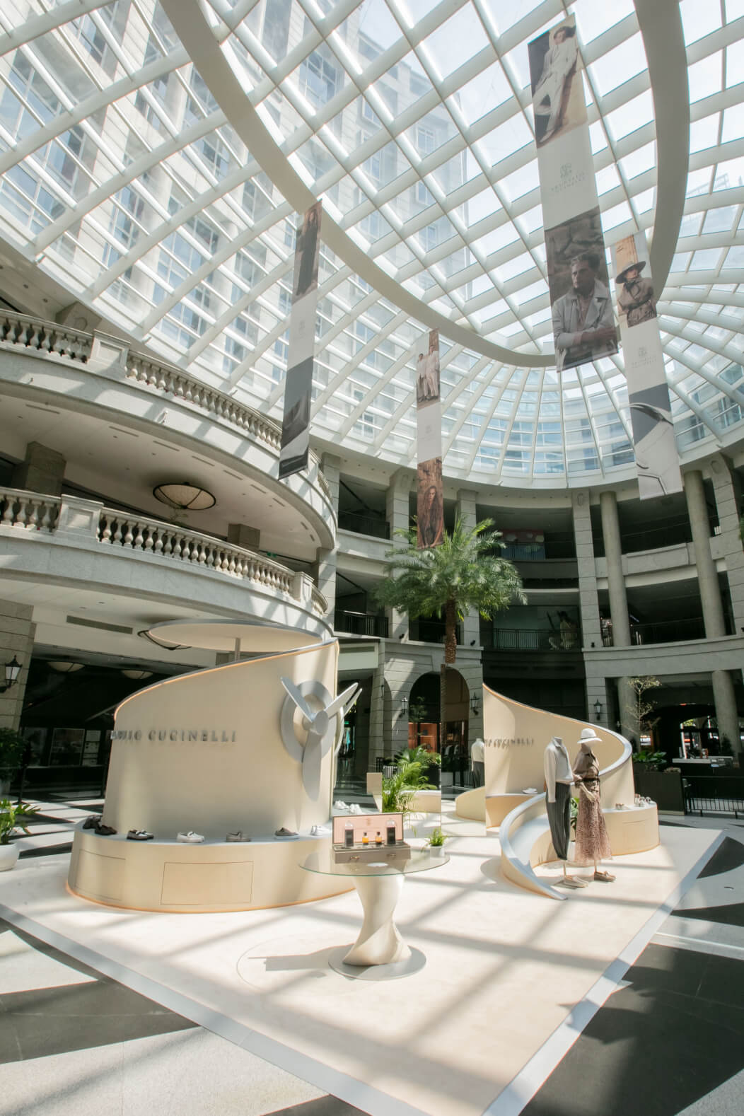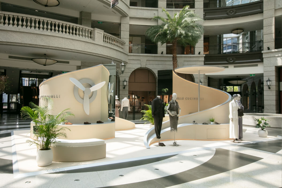 為完整呈現品牌春夏系列靈感,Brunello Cucinelli特別於3月26日至4月20日期間於台北Bellavita寶麗廣塲開設期間限定快閃店。由義大利設計團隊特別獨家打造的快閃店,承襲品牌優雅簡約的時尚風格,並注入源於春夏男女裝系列以「旅行」為概念的設計靈感,採用不規則圓弧形結構店裝設計,融合巨型螺旋槳裝置,在純淨柔和的米色調空間中,將男女服飾、包款、配件、香水、鞋履置於一室,體現品牌一貫沉靜雅致的美學素養,邀請消費者一同沉浸式探索Brunello Cucinelli最溫柔的靜奢魅力。
