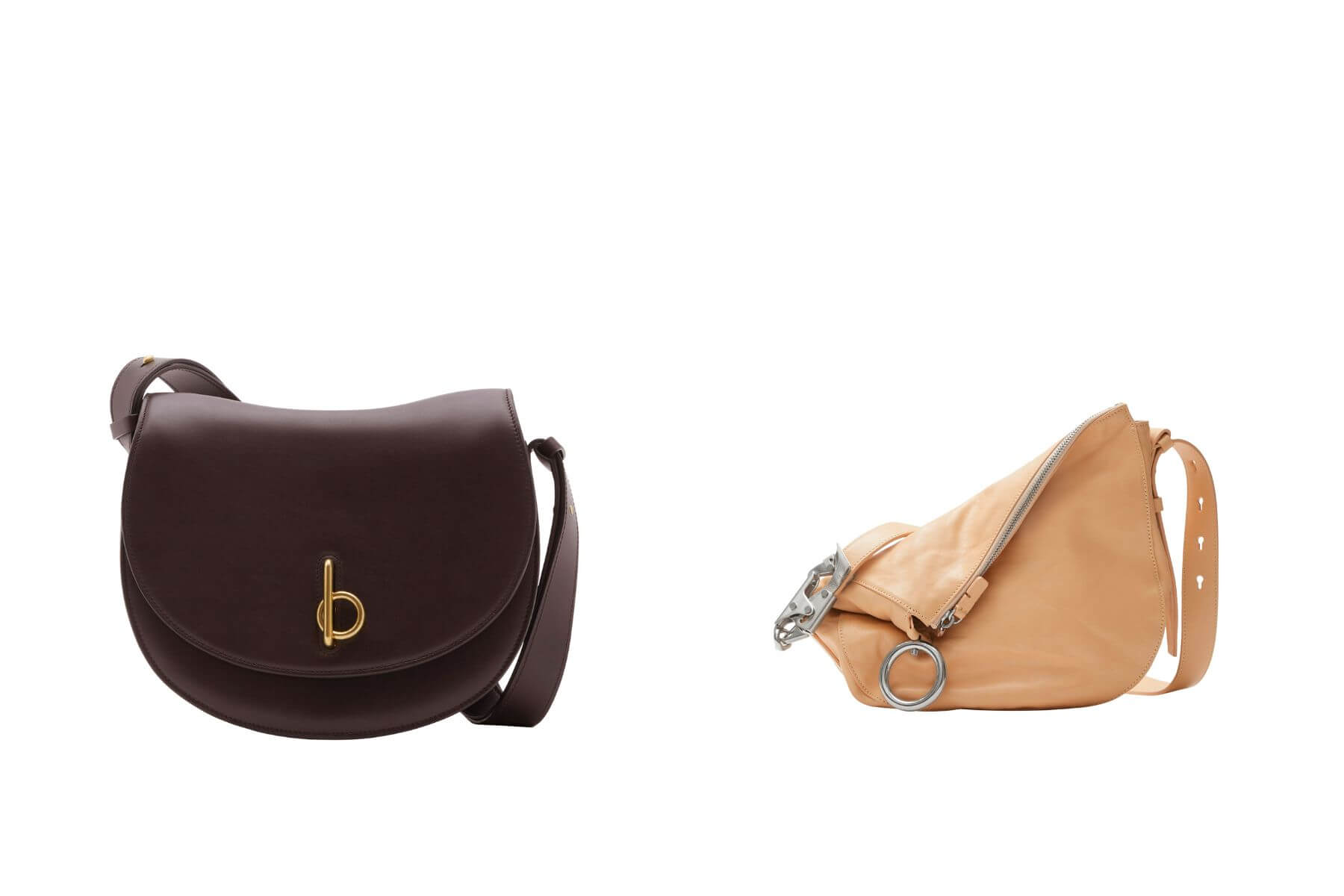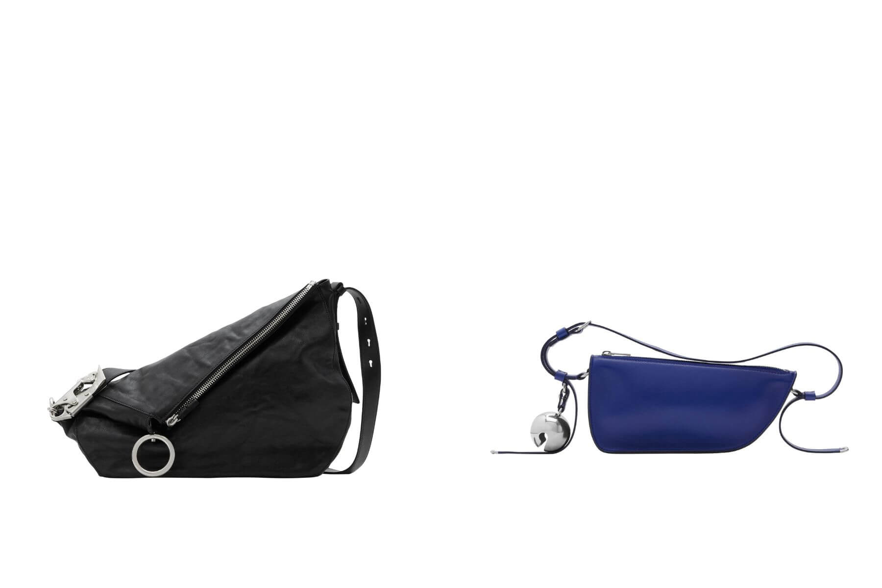 (左)Knight中型黑色牛皮騎士包_$115,000;(右)Shield騎士藍羊皮單肩包_$69,000 by Burberry。