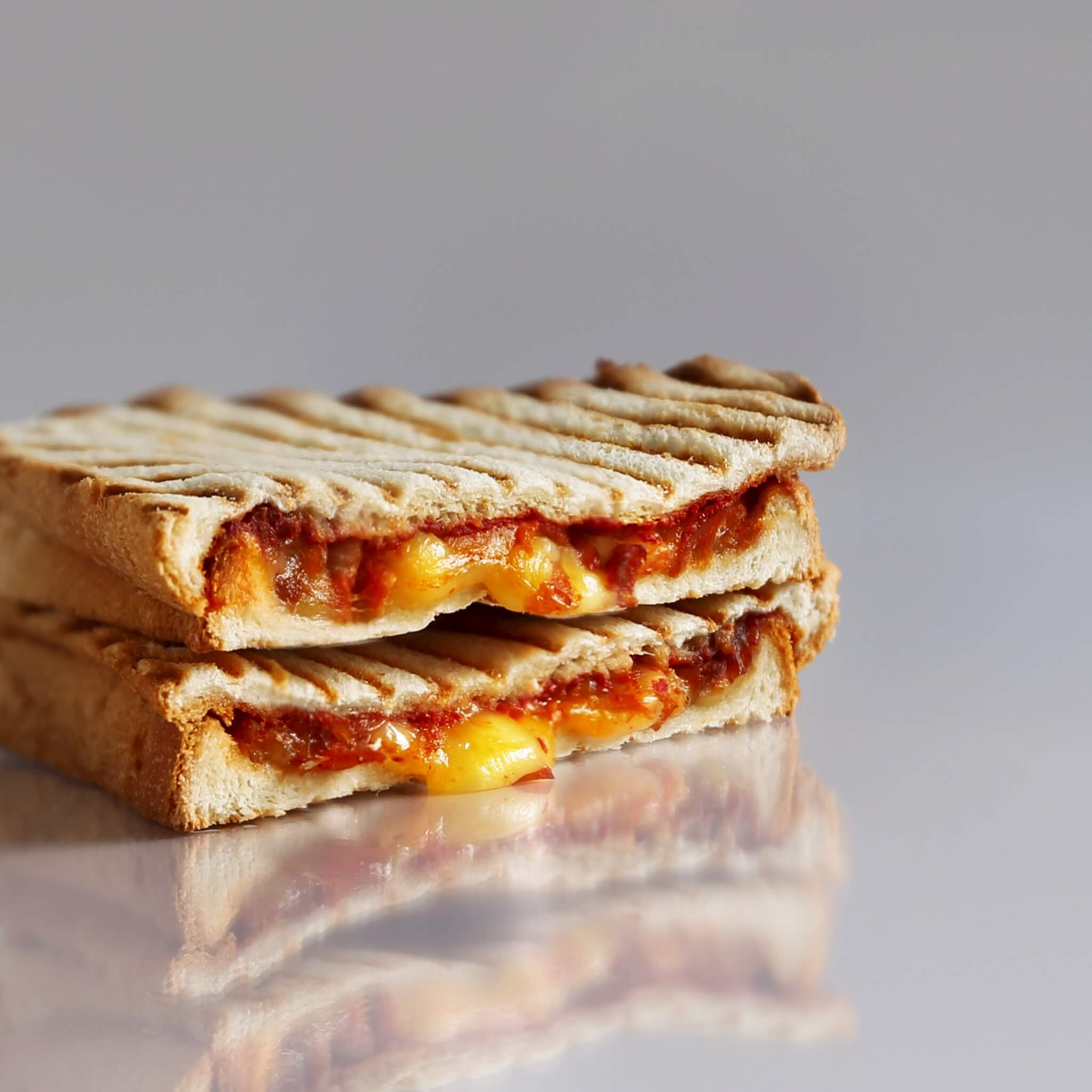 (左)CAFE!N | AMG 紅炎辣醬烤雞三明治;(右)CAFE!N | AMG 野莓渦輪霜淇淋。