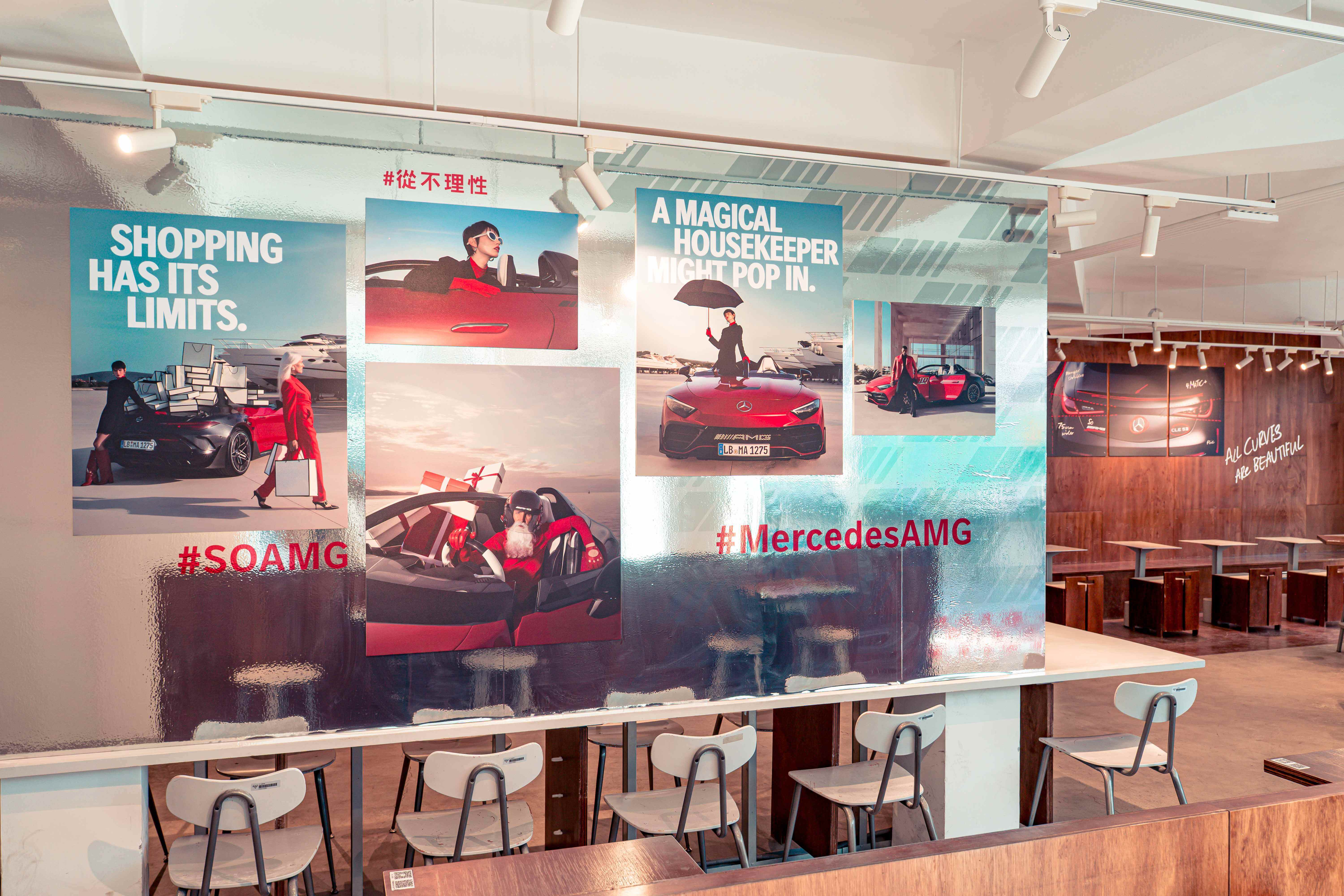 Mercedes-AMG首度跨界合作台灣咖啡品牌CAFE!N,讓店面裝潢、餐點到商品都注入熱血氛圍。
