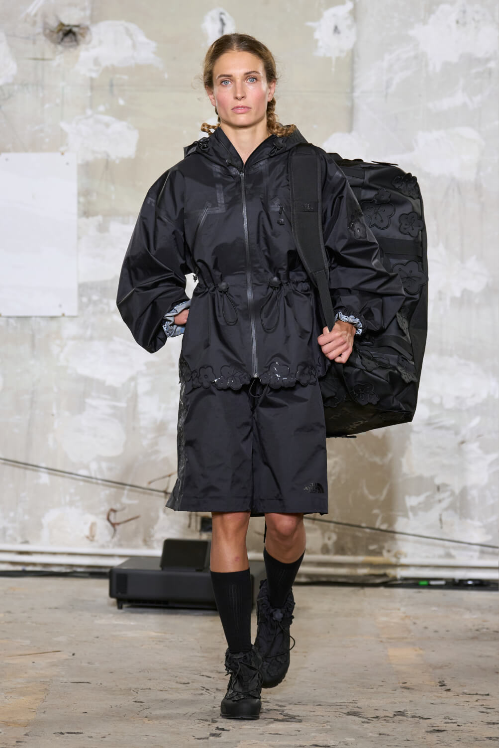 Cecilie Bahnsen 信義 A13 期間限定店不僅匯聚 2025 春夏系列的多款新品,更帶來品牌與 The North Face 的首度聯名。其次聯名系列以全黑設計貫穿,精心打造 7 款風格單品,融合機能性與優雅,以此向已故 The North Face設計師 Ingrid Harshbarger 致敬,表達雙方對工藝與工藝之美的共同堅持。該系列巧妙融合機能性、耐用性與高級時裝語彙,將登山的探險精神轉化為前衛時尚語言。Cecilie Bahnsen 重新詮釋 The North Face 經典戶外裝備,如:防水機能登山外套、黑色機能圓筒包、登山靴等,並融入品牌標誌性的 3D 立體花卉裝飾,搭配實用機能材質與精緻剪裁細節,同時提升耐用性與抗磨損性能,重新定義機能穿搭與時裝美學的界線,展現技術創新與永恆工藝,勾勒自然與城市交織的時尚語言,賦予戶外機能服裝全新詮釋。整體而言,Cecilie Bahnsen 2025 春夏系列透過與 The North Face 的聯名合作,成功融合浪漫美學與戶外機能,探索無界限的時尚語境,以全新設計語彙詮釋柔美與力量融合的本質。